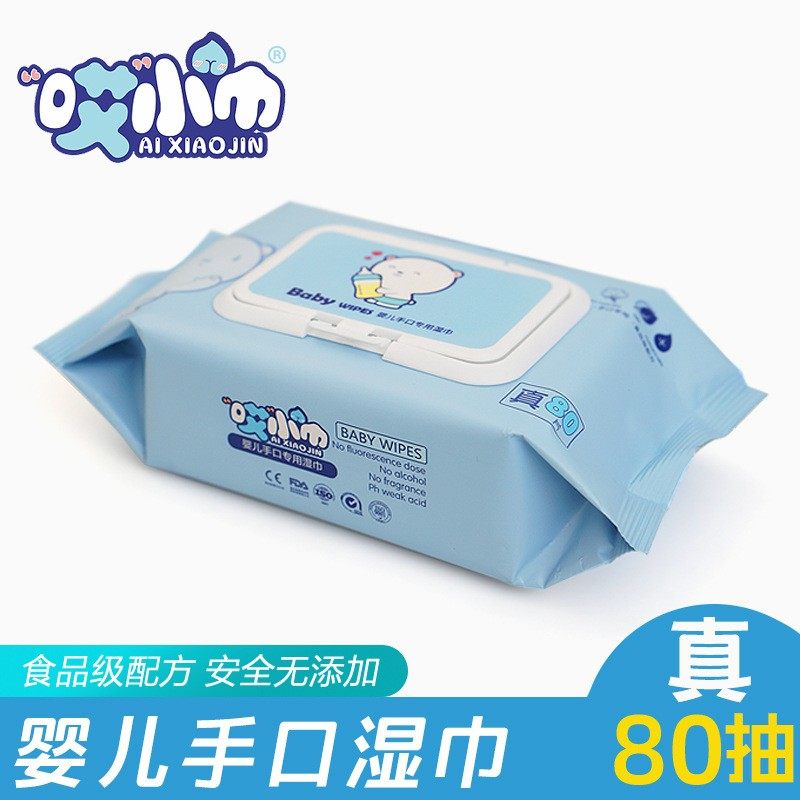 哎小巾每包80抽新生宝宝手口湿巾不含酒精儿童家用实惠带盖湿巾纸