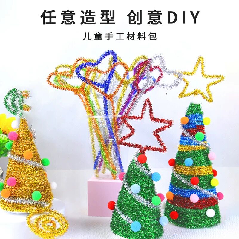 圣诞节金葱扭扭棒加密毛根手工diy材料包儿童彩色闪光特密毛条