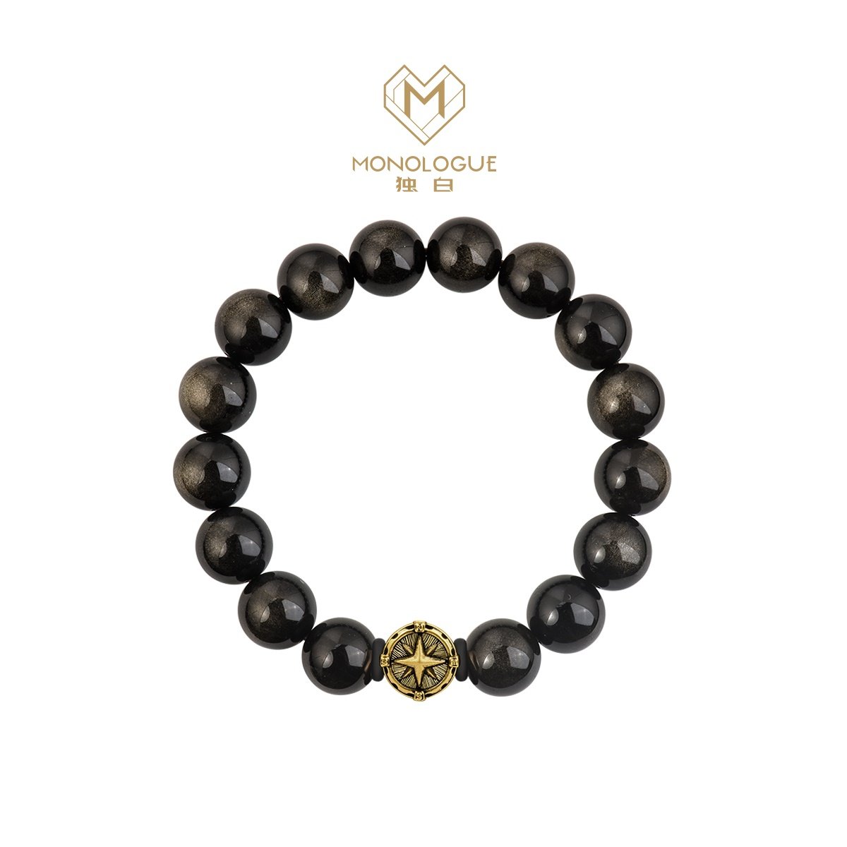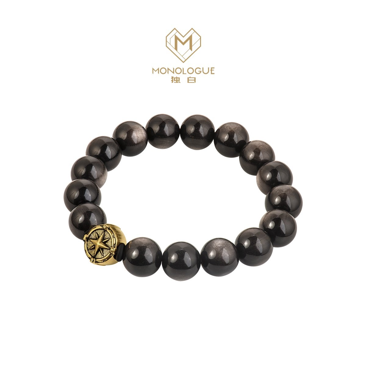 周大福MONOLOGUE独白北纬指南针黑曜石复古黄金男士转运珠MR1791