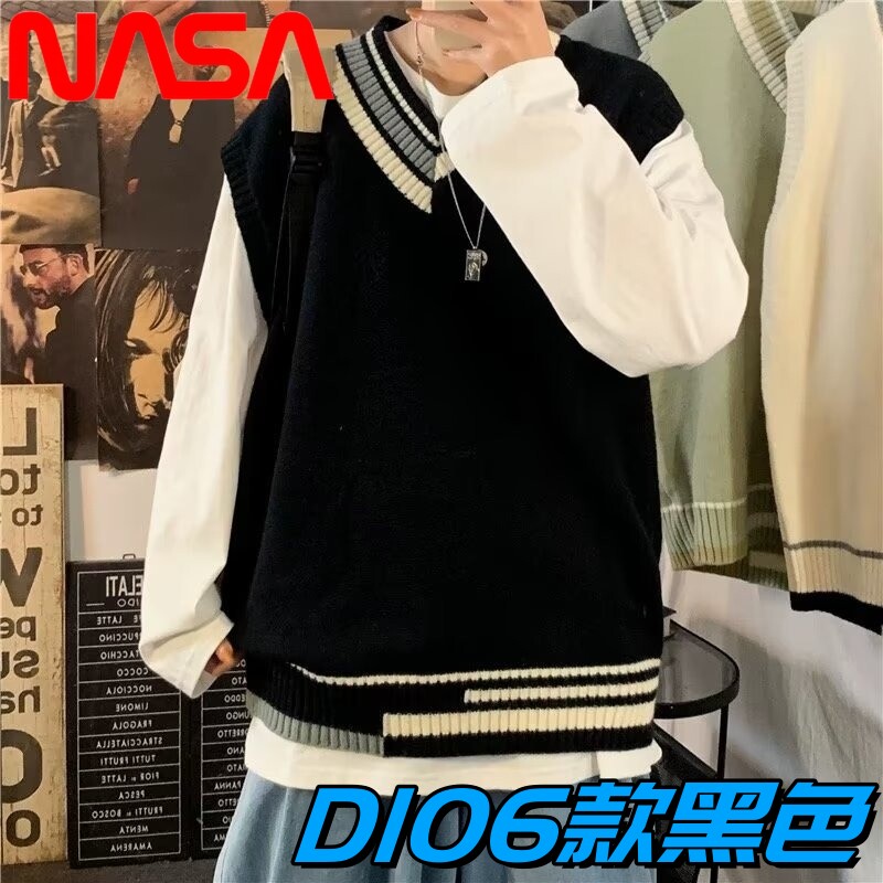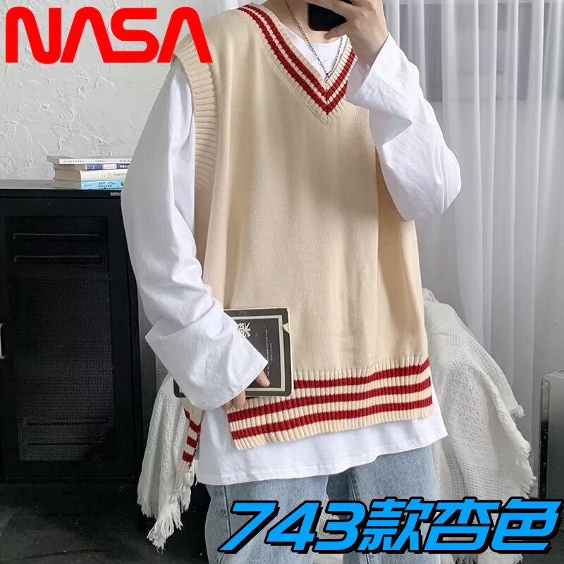 淘宝海外潮牌R店,NASA联名秋冬背心毛衣男女港风圆领打底针织衫套头慵懒情侣线衣