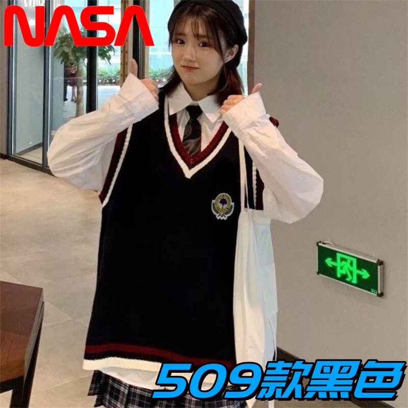 xq-NASA联名秋冬背心毛衣男女港风圆领打底针织衫套头慵懒情侣线