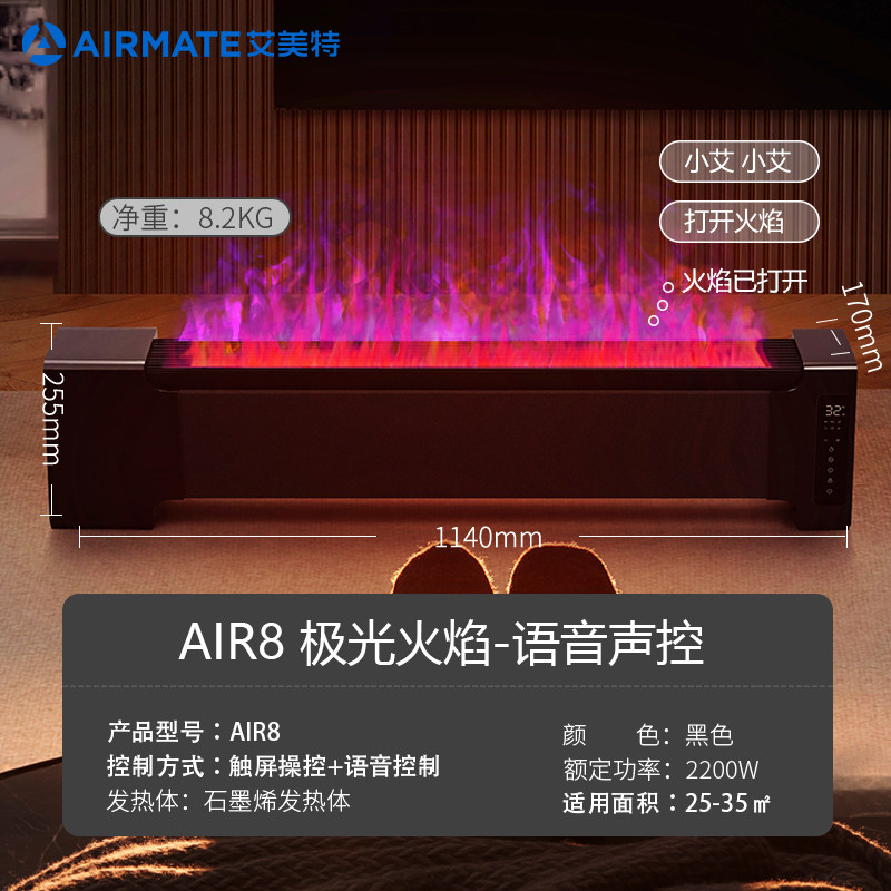 艾美特AIR6/5PRO/8石墨烯踢脚线取暖器大家用节能火焰加湿电暖器