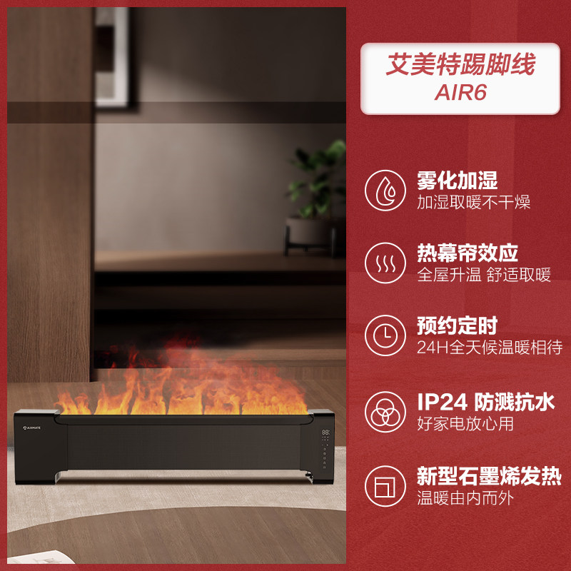 淘宝智能生活厨电企业店,艾美特AIR6/5PRO/8石墨烯踢脚线取暖器大家用节能火焰加湿电暖器