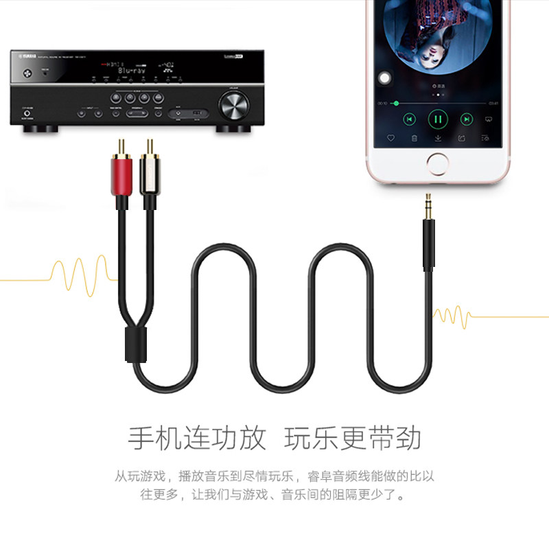 手机输出连接功放通用一分二双头插头音响输入电脑与音箱数据音频