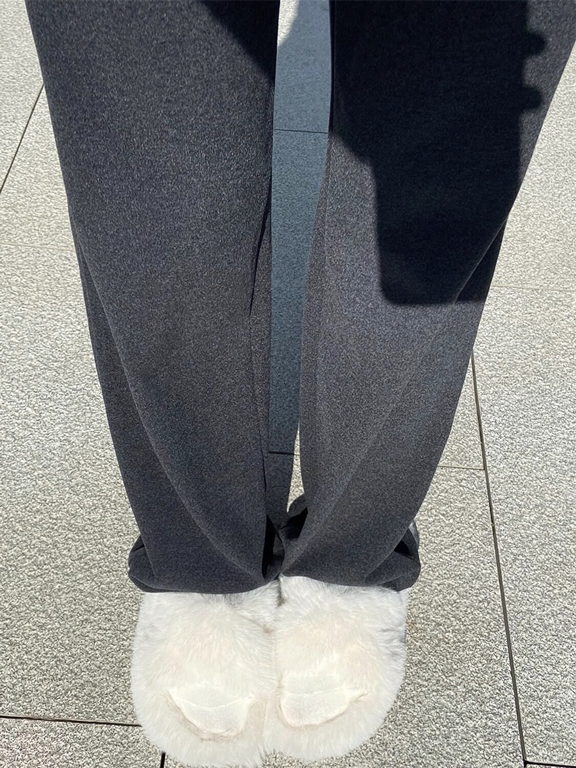 慵懒风直筒窄版糯米裤女秋冬大码胖mm高腰加绒黑灰色休闲阔腿裤子