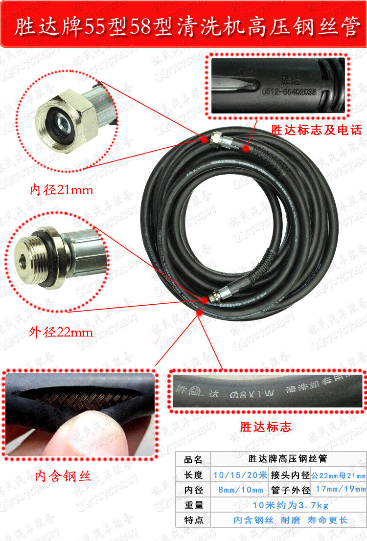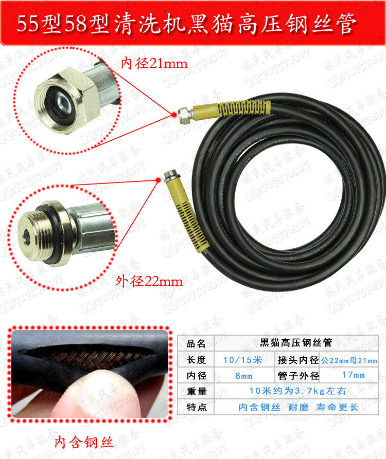 淘宝辰粤五金,55型出水钢丝管水管子高压清洗机黑猫洗车机58刷车泵洗车水泵管子