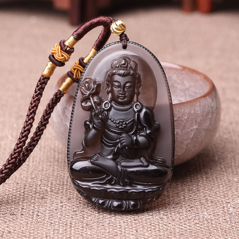 新款大势至菩萨本命佛吊坠大势至菩萨黑曜石马年本命年饰品 男女