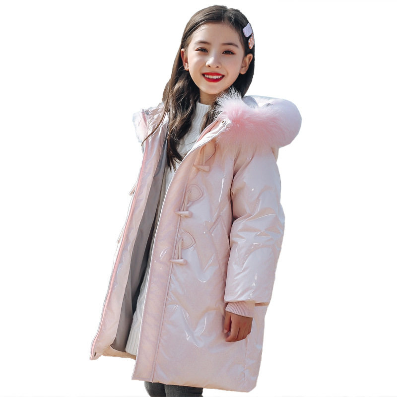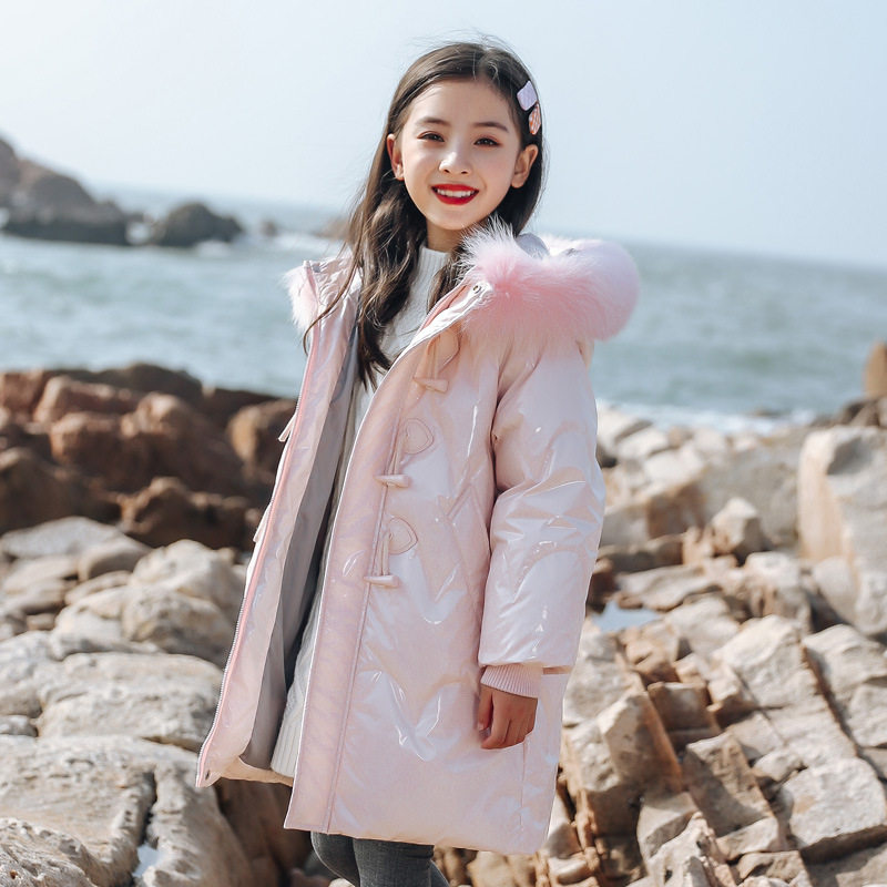 2023新款冬中大童加厚女孩外套正品女童羽绒服儿童中长款连帽外套