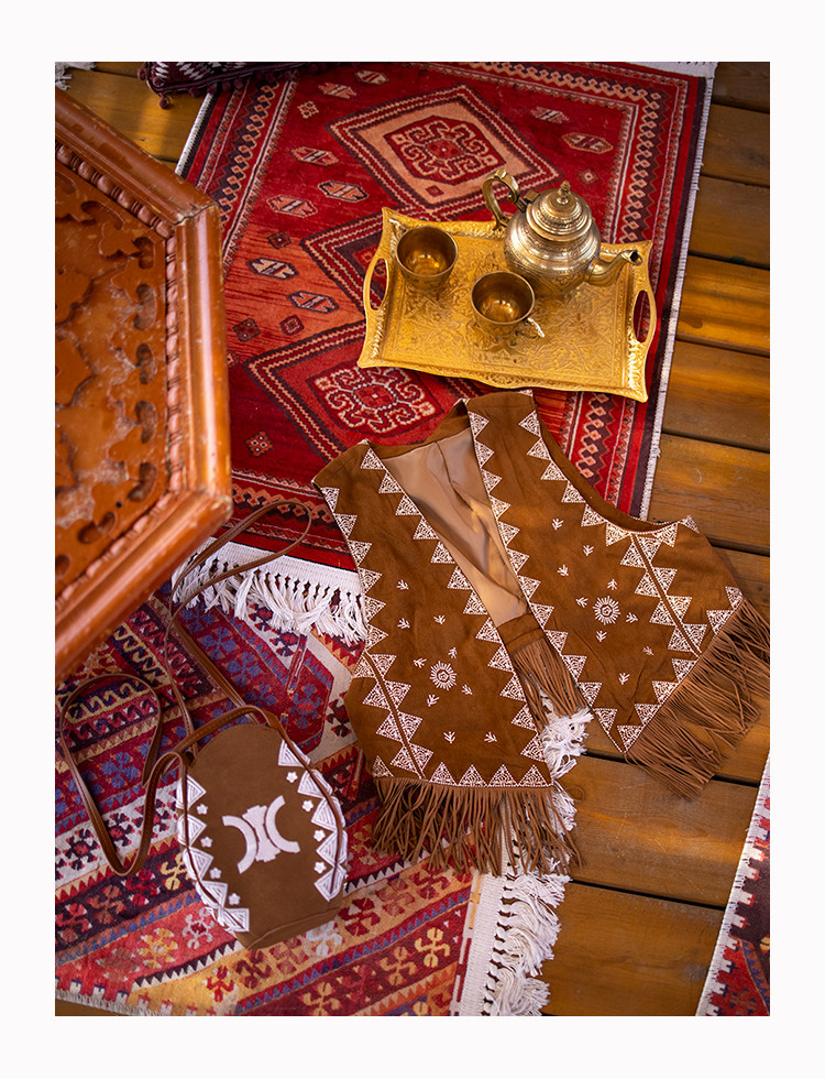 理想三旬女装民族风西部牛仔棕色麂皮绒绣花马甲短款开衫外套