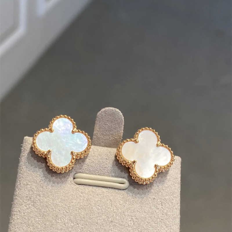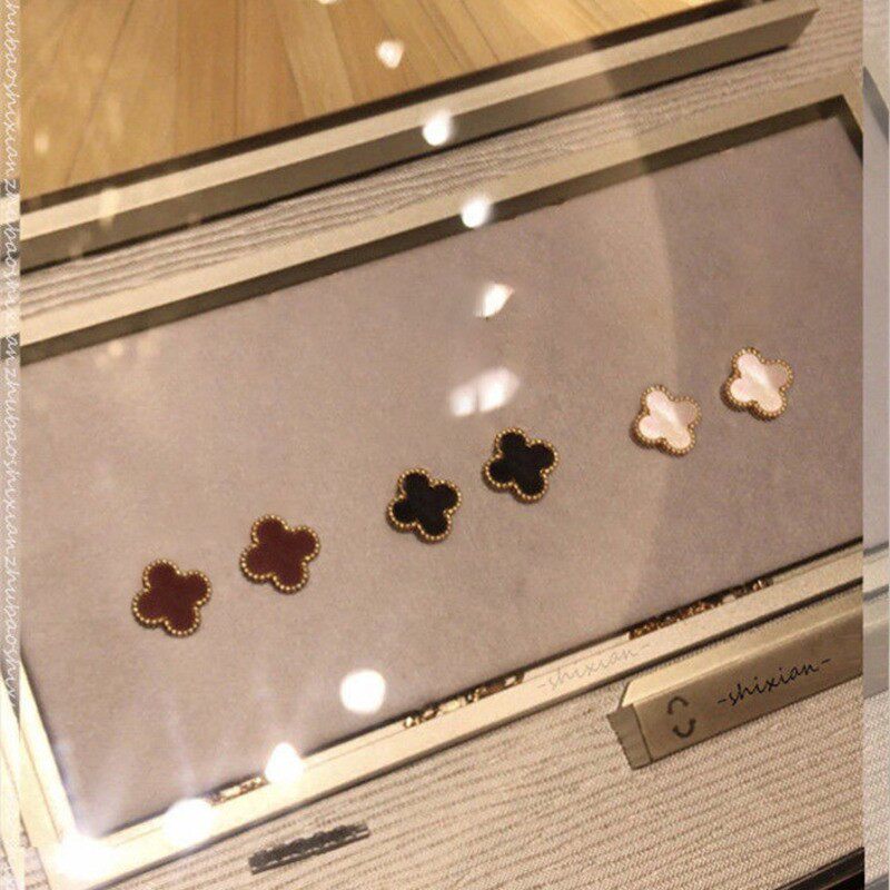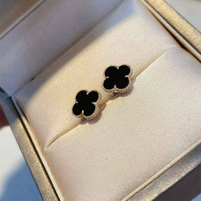 四叶草耳钉女纯银18k玫瑰金气质简约网红耳钉贝母玛瑙轻奢小众