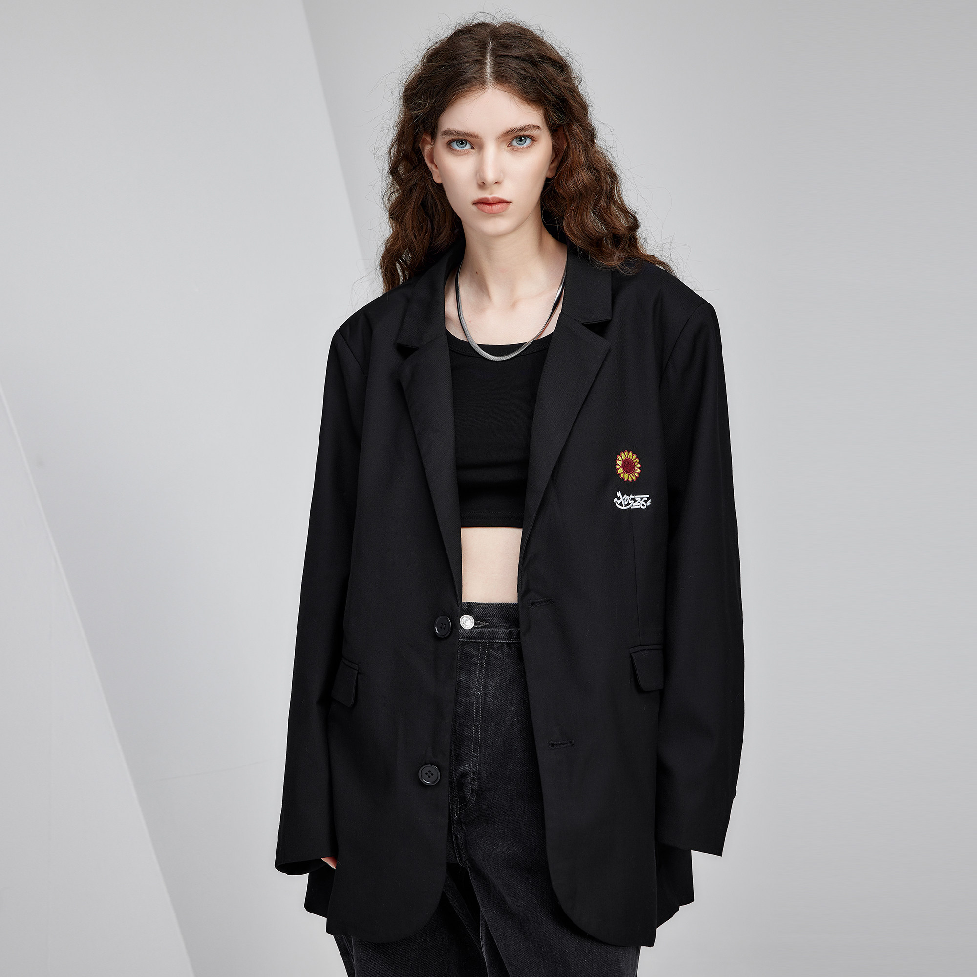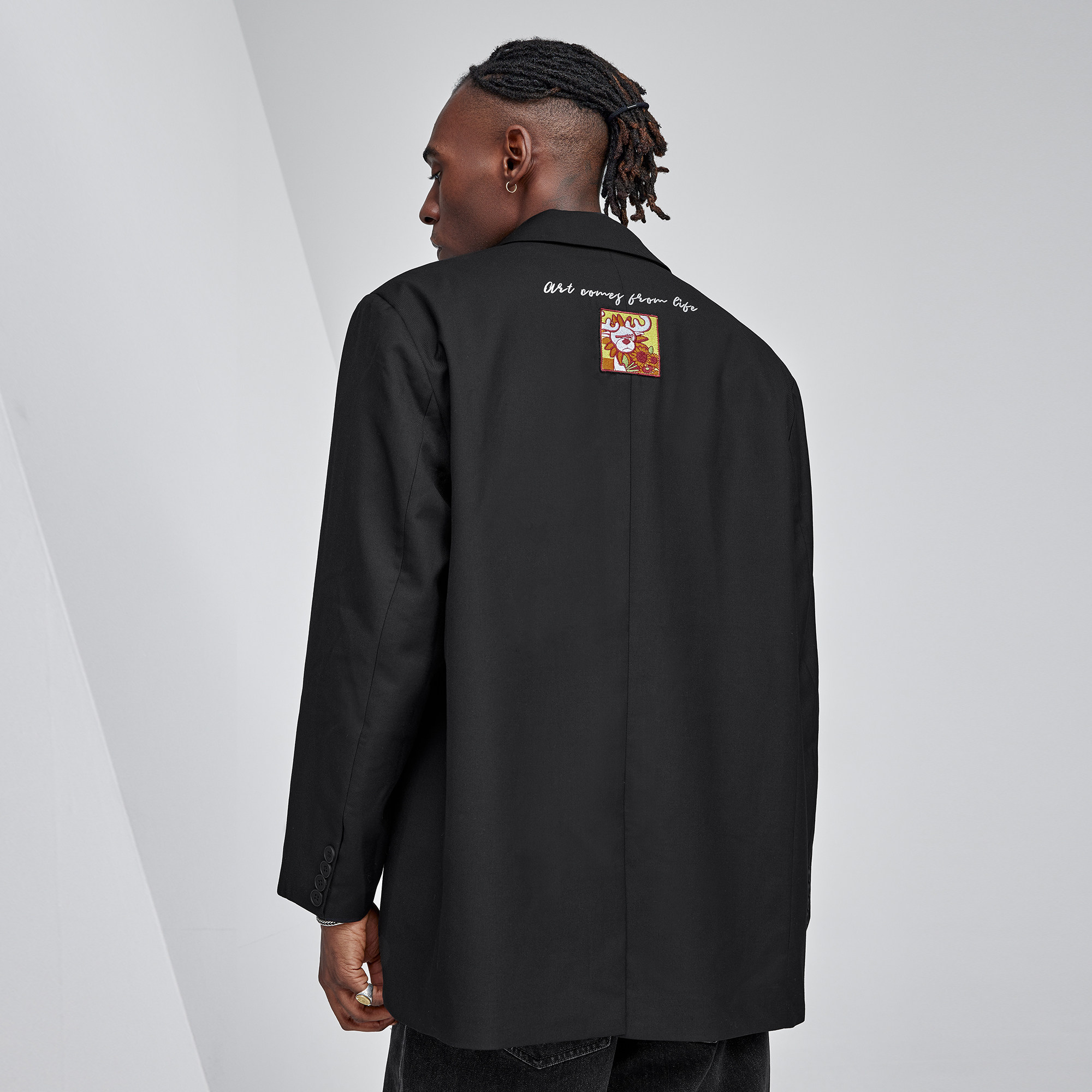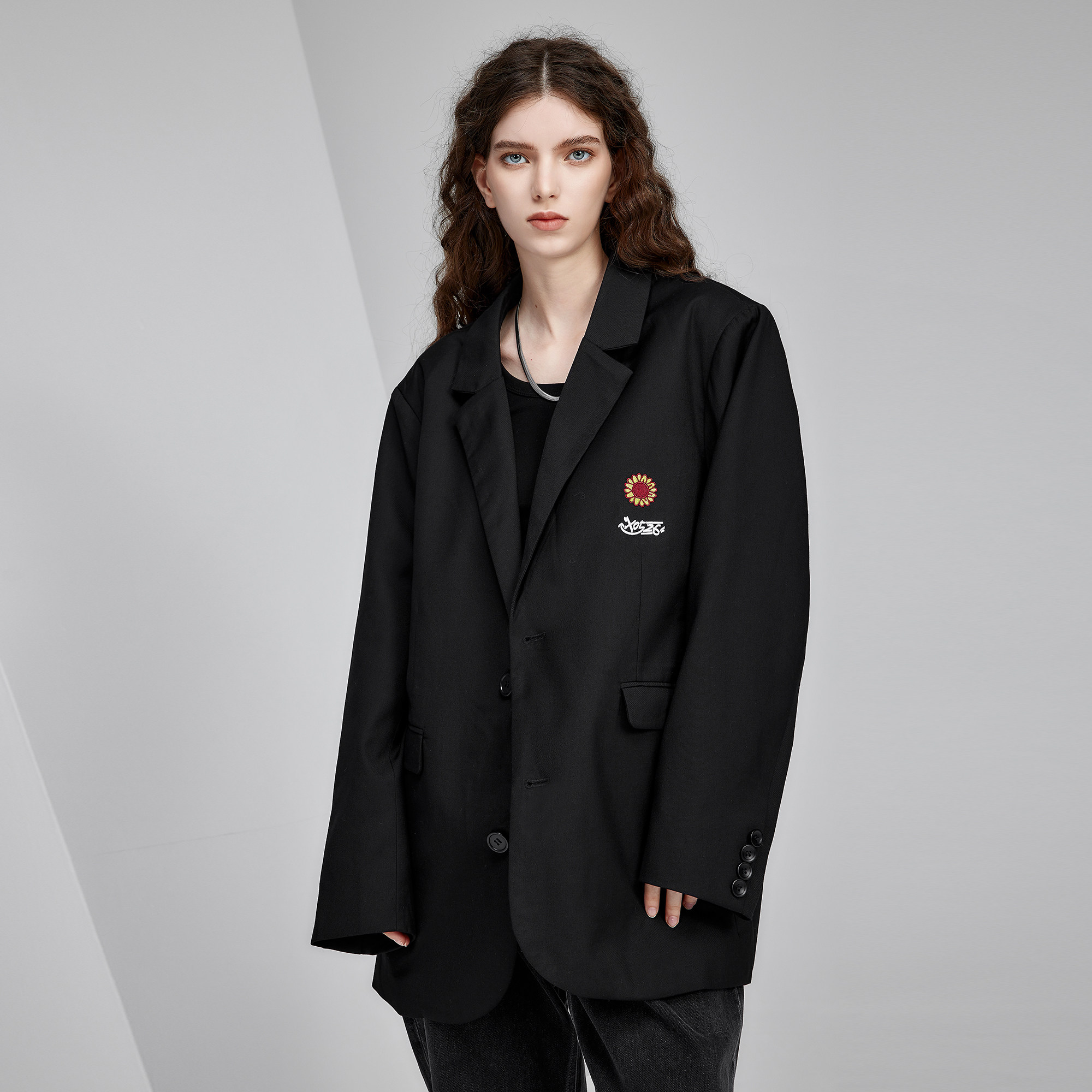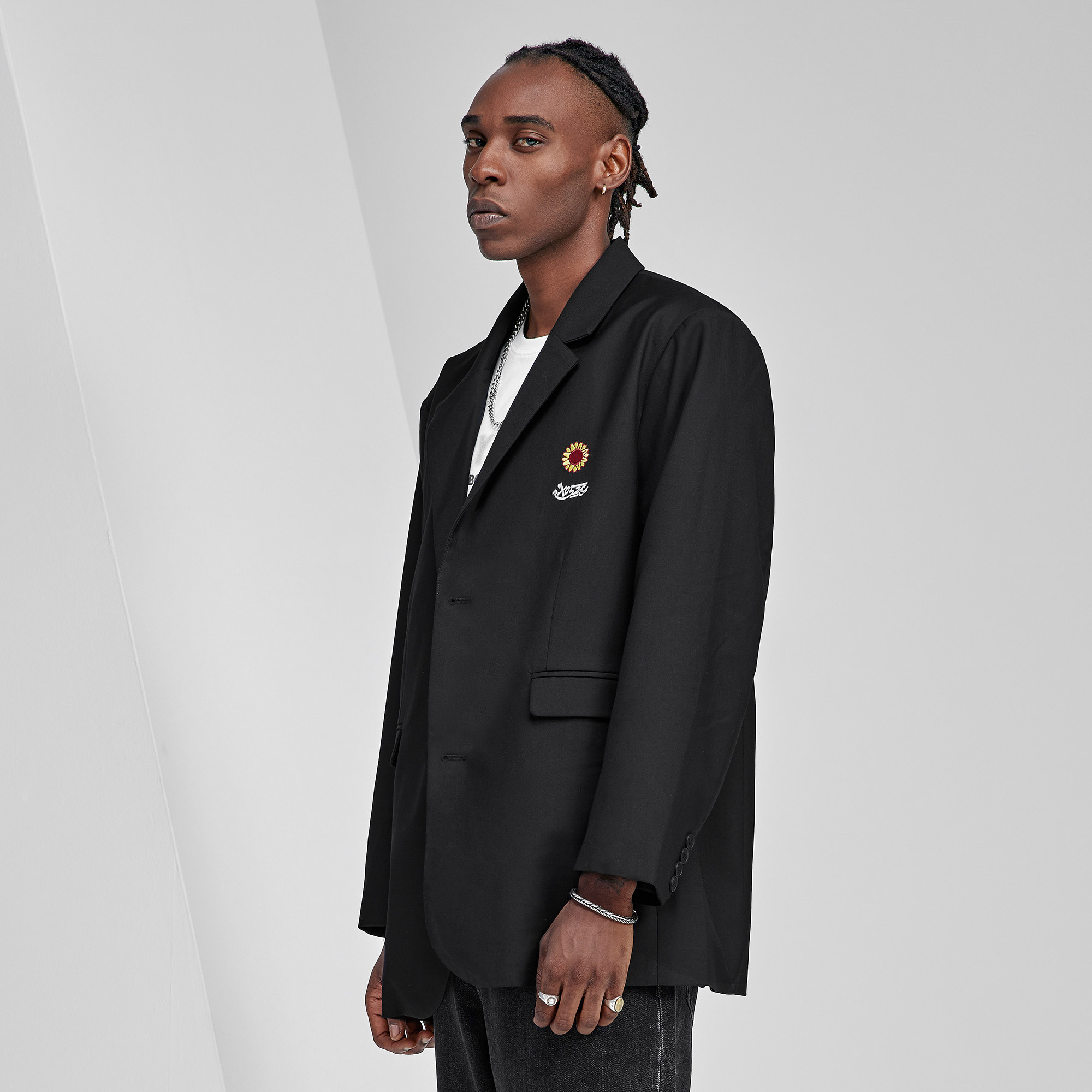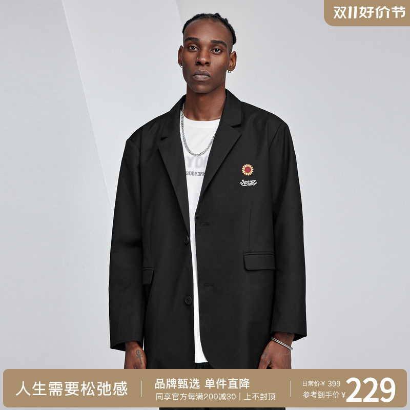 X0526×BODYDREAM联名款 休闲西装男黑色夹克潮牌绣花单西服外套