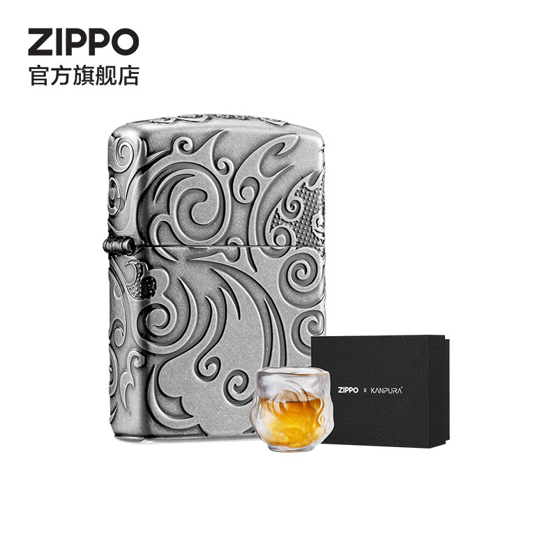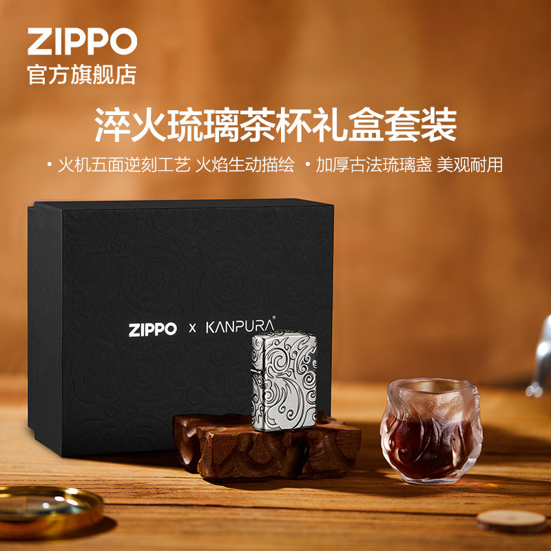 ZIPPO官方旗舰店之宝淬火流云琉璃茶杯礼盒套装打火机创意礼物