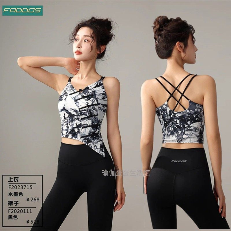淘宝瑜伽蛋蛋 瑜伽生活馆,梵蒂欧瑜伽服女新款国风水墨吊带背心修身显瘦弹力健身上衣带胸垫
