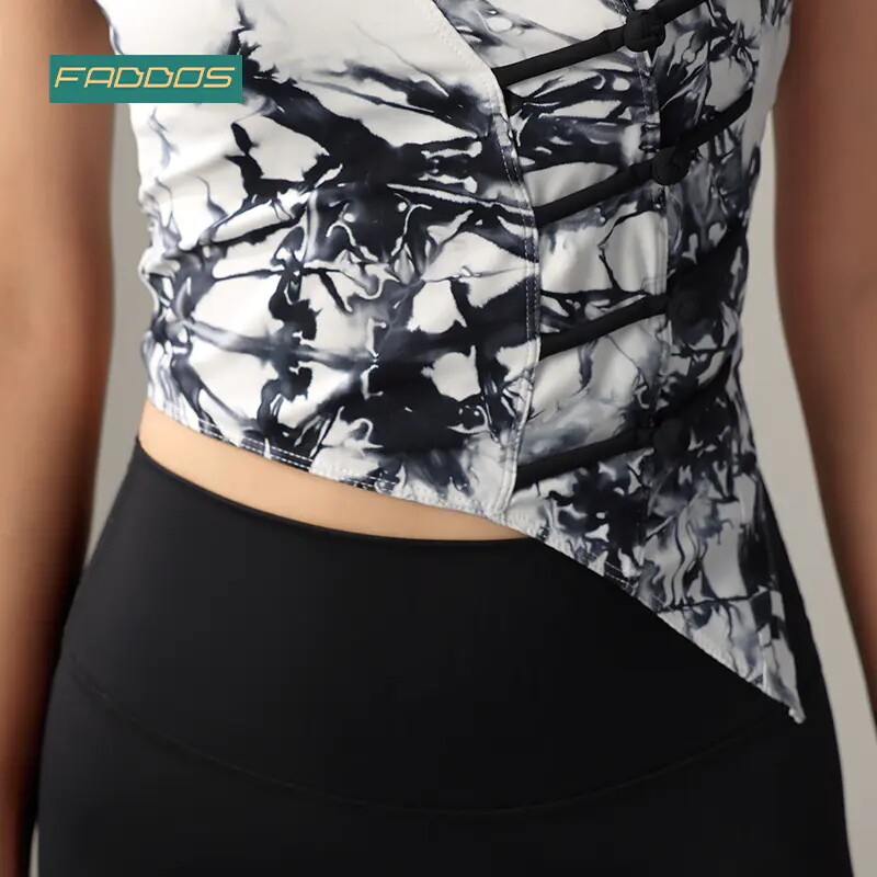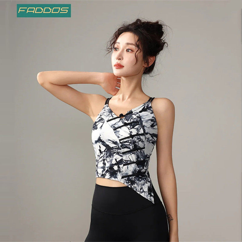 梵蒂欧瑜伽服女新款国风水墨吊带背心修身显瘦弹力健身上衣带胸垫