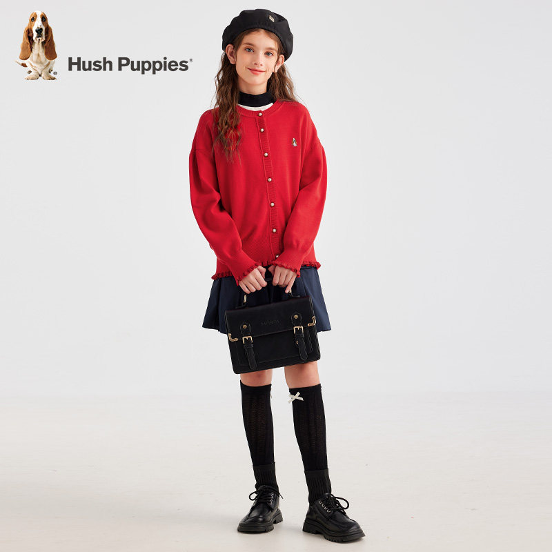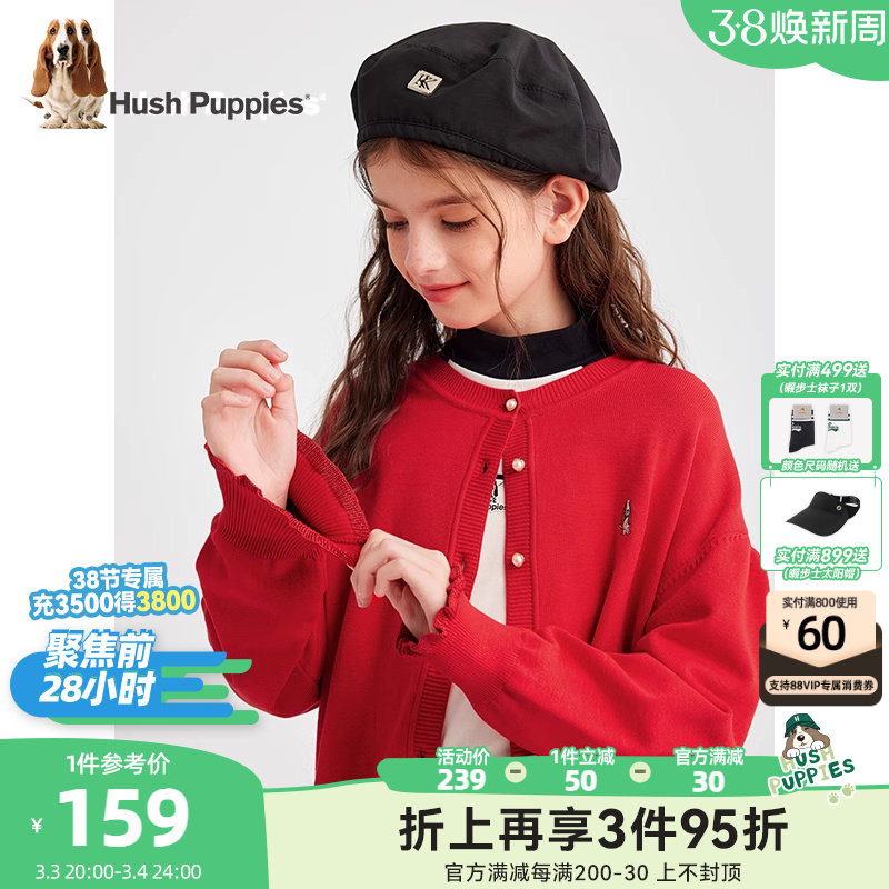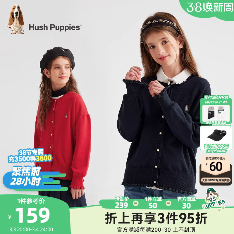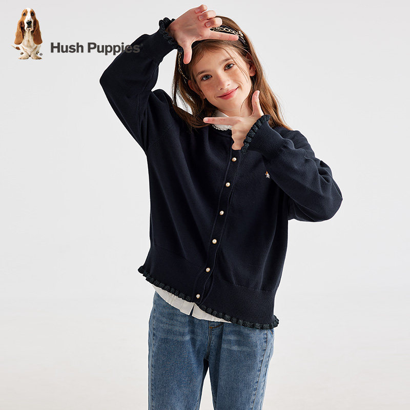 天猫hushpuppies童装旗舰店,暇步士女童甜美花边线衣打底衫,俏皮花边袖口 品牌logo刺绣 复古优雅纽扣