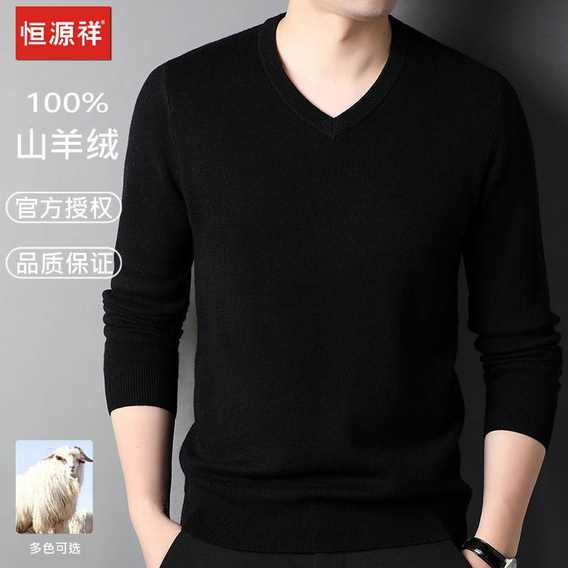 淘宝轻奢男装专柜店,恒源祥羊绒衫男新款冬季100山羊绒V领针织衫鸡心领男士加厚款毛衣