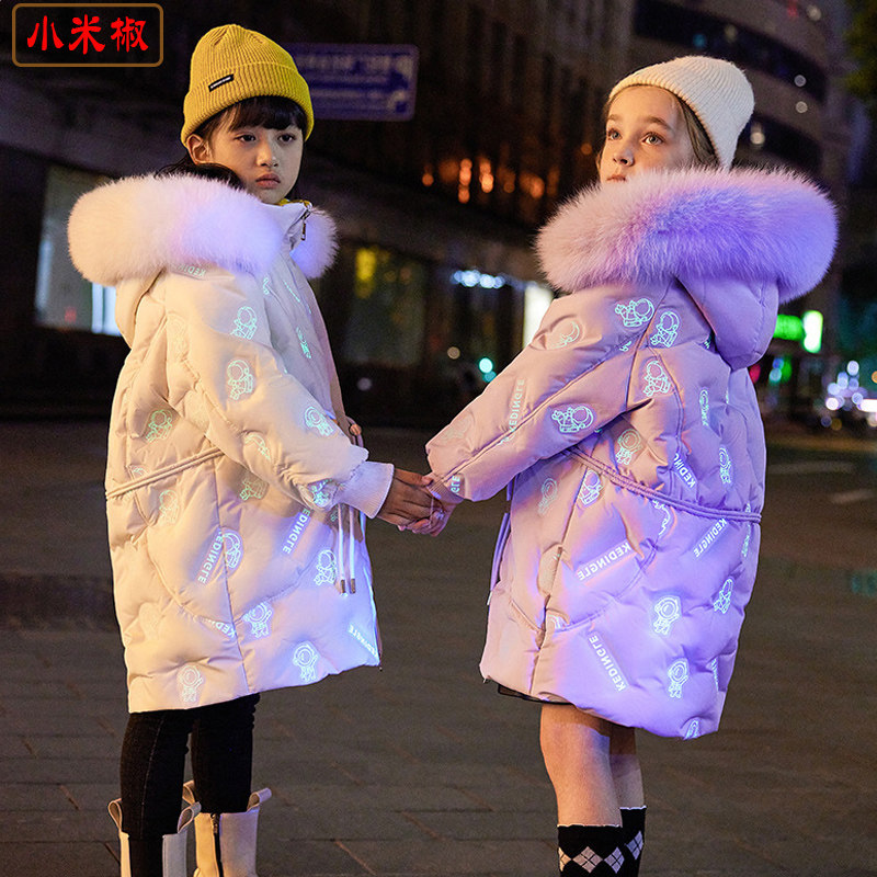 女童羽绒服中长款2023冬季新款儿童夜光…