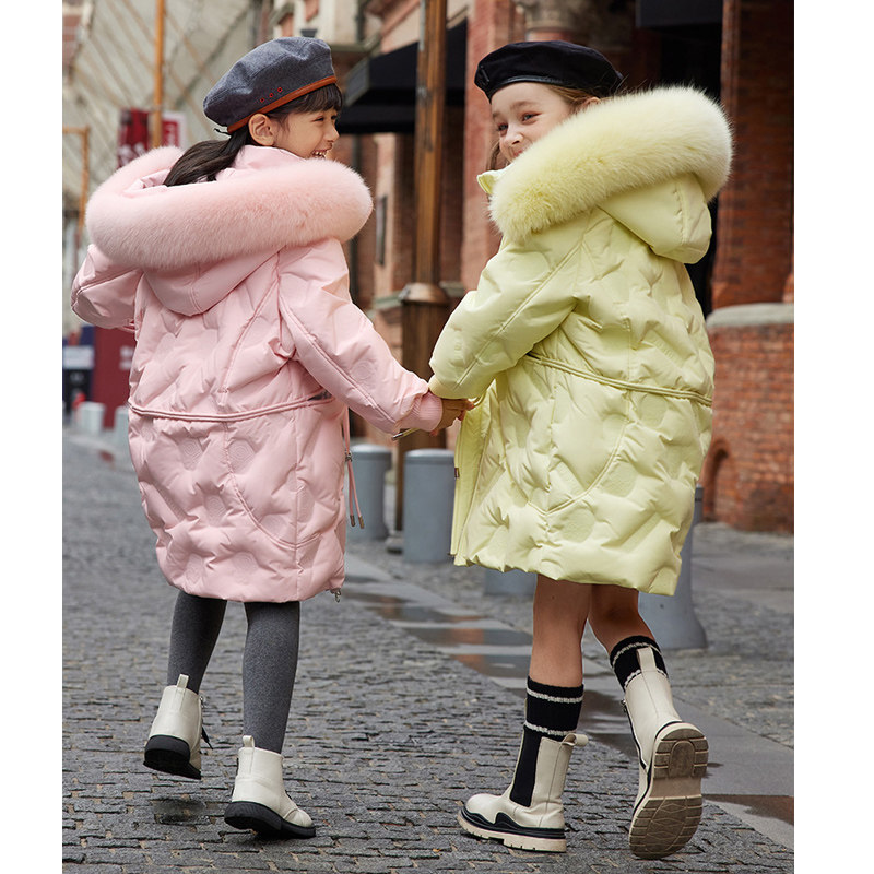 黑金儿童羽绒服2023中长款加厚连帽保暖男女中大童宝宝羽绒外套潮