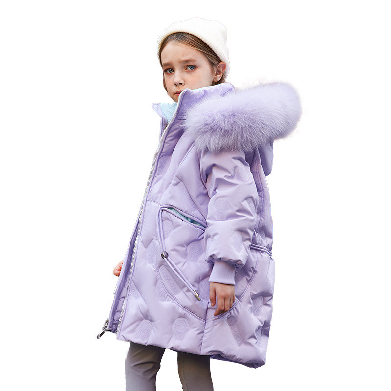 女童羽绒服中长款2023冬季新款儿童夜光印花加厚大童女孩外套反季