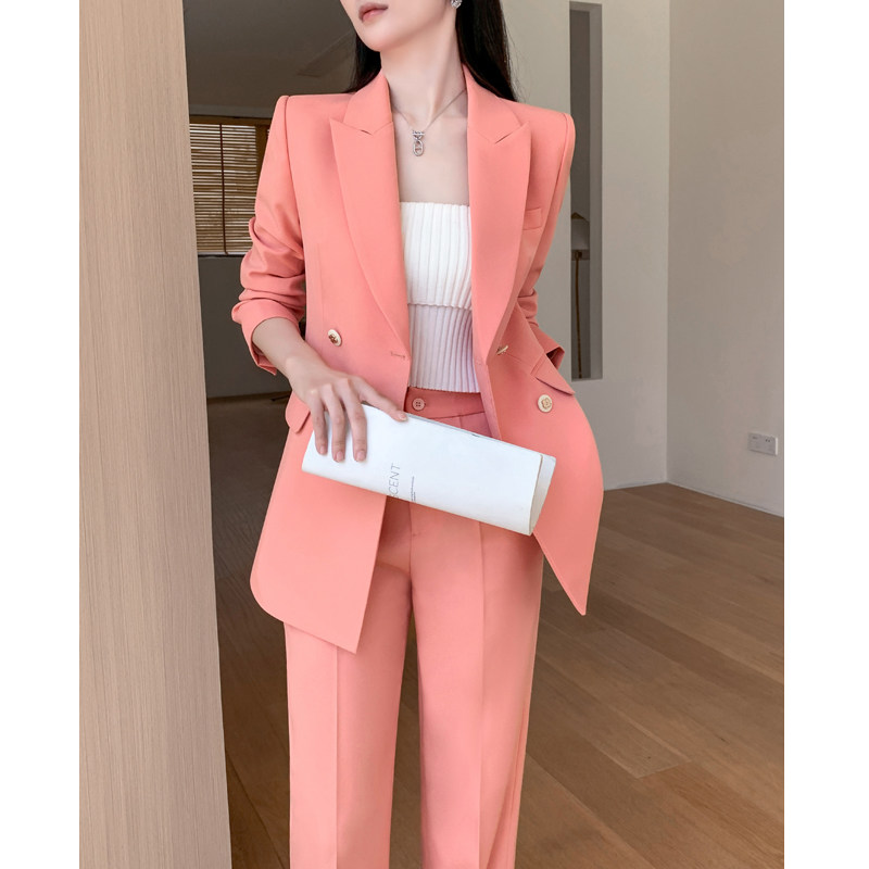 休闲西装套装女2023新款御姐职业装ol气质正装高级感粉色西服外套