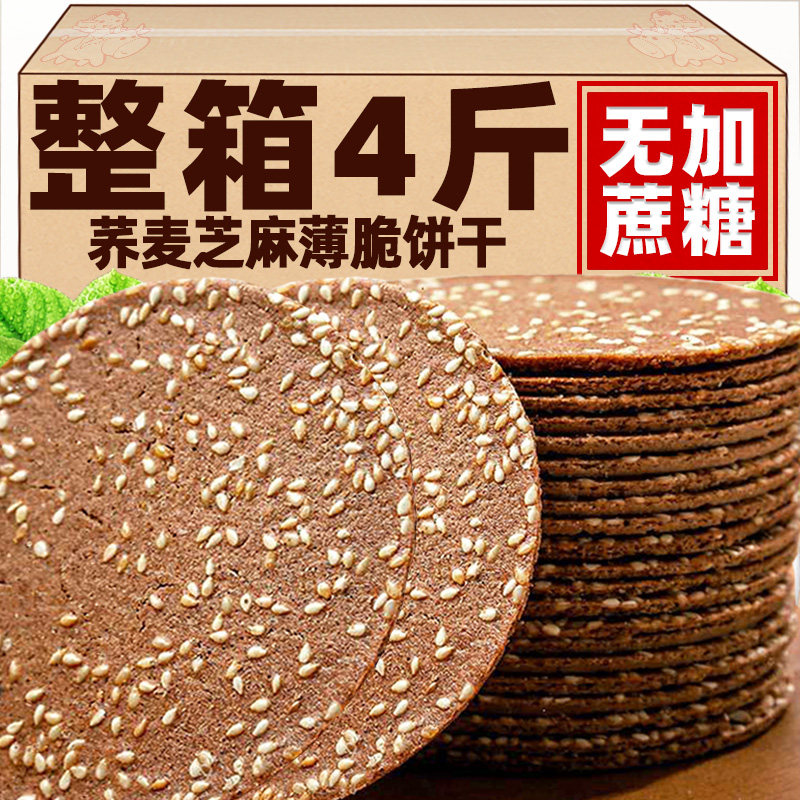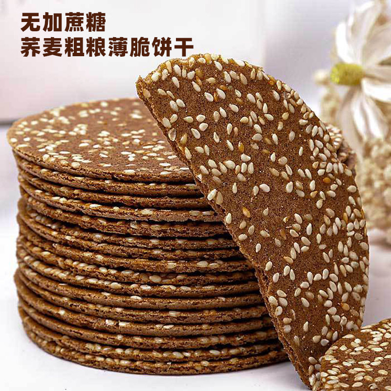 荞麦芝麻饼干整箱早餐代餐无糖精粗粮薄饼芝麻片孕妇老人健康零食