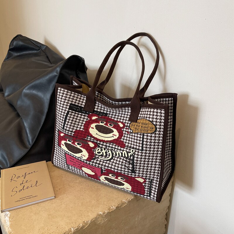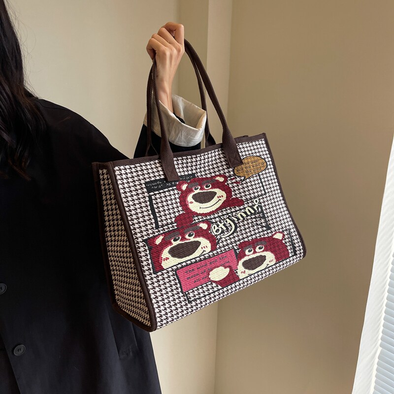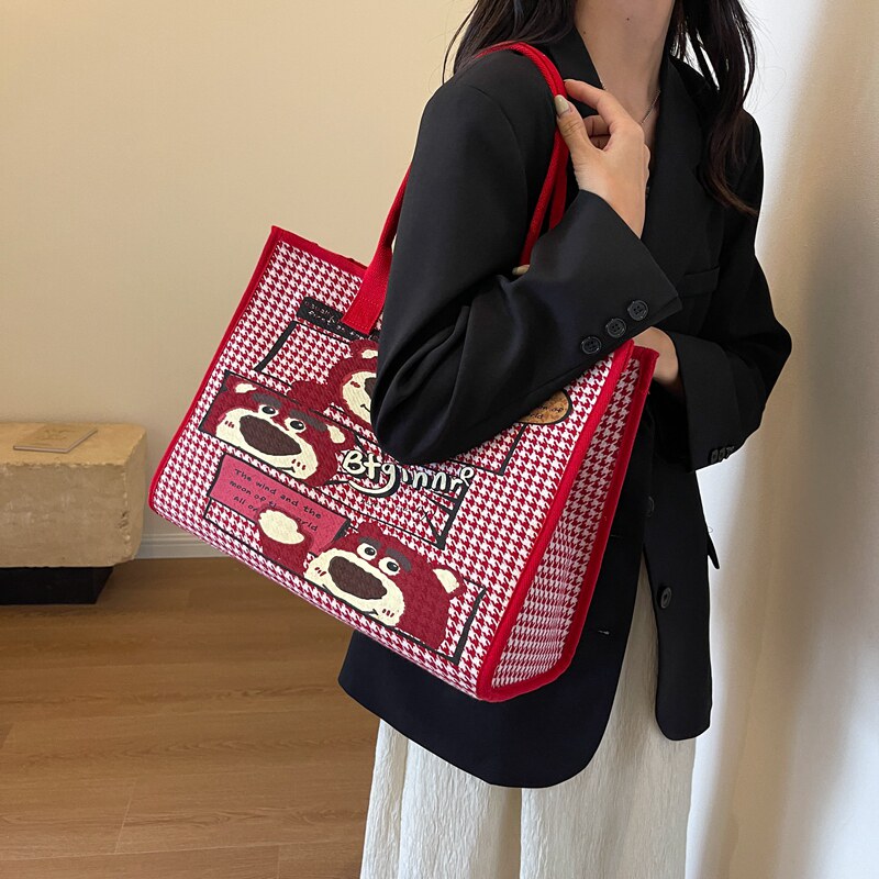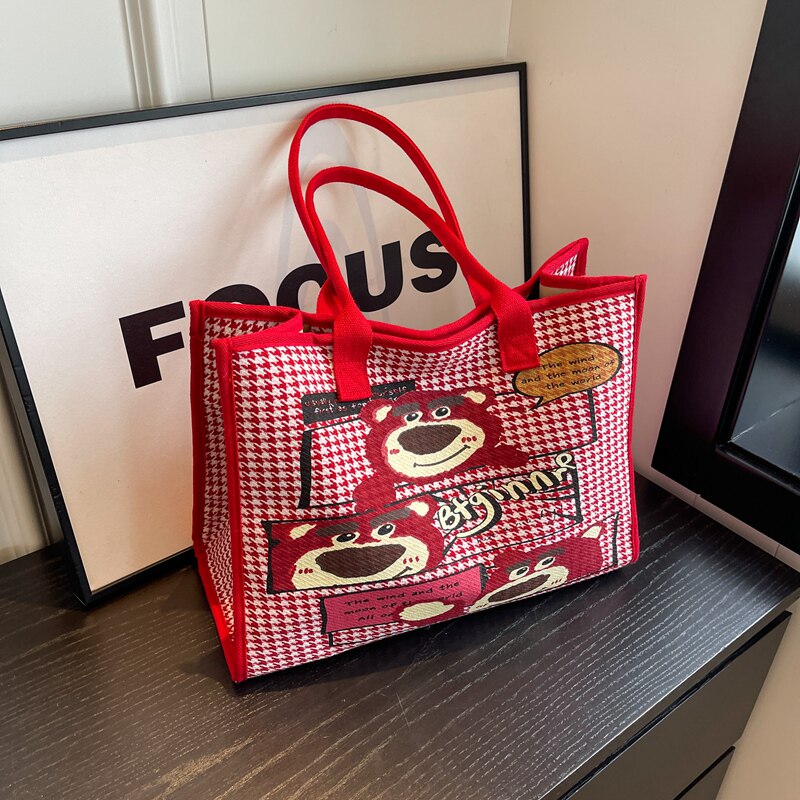 淘宝苏格Studio 小众设计,帆布包女大容量包包2023新款可爱草莓熊手提袋百搭通勤单肩托特包