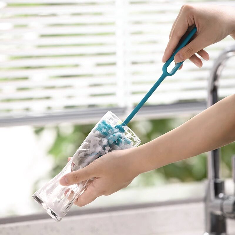 茶花长柄家用杯刷清洁杯子海绵刷PP清洁刷无死角去污专用奶瓶刷子