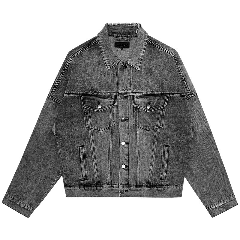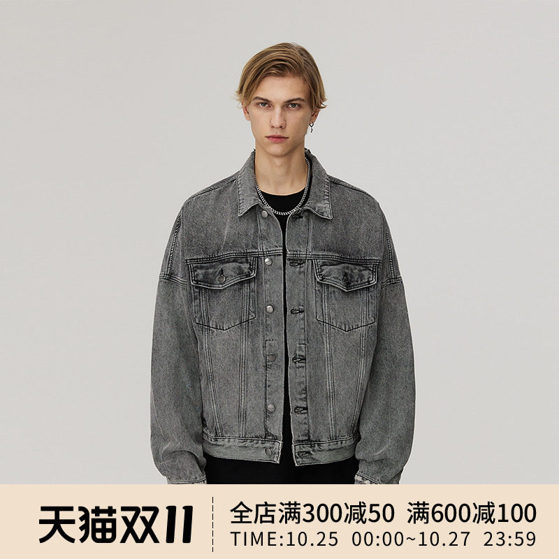 FDR官方店 立体工装袋破洞牛仔外套男女秋季翻领宽松情侣装上衣