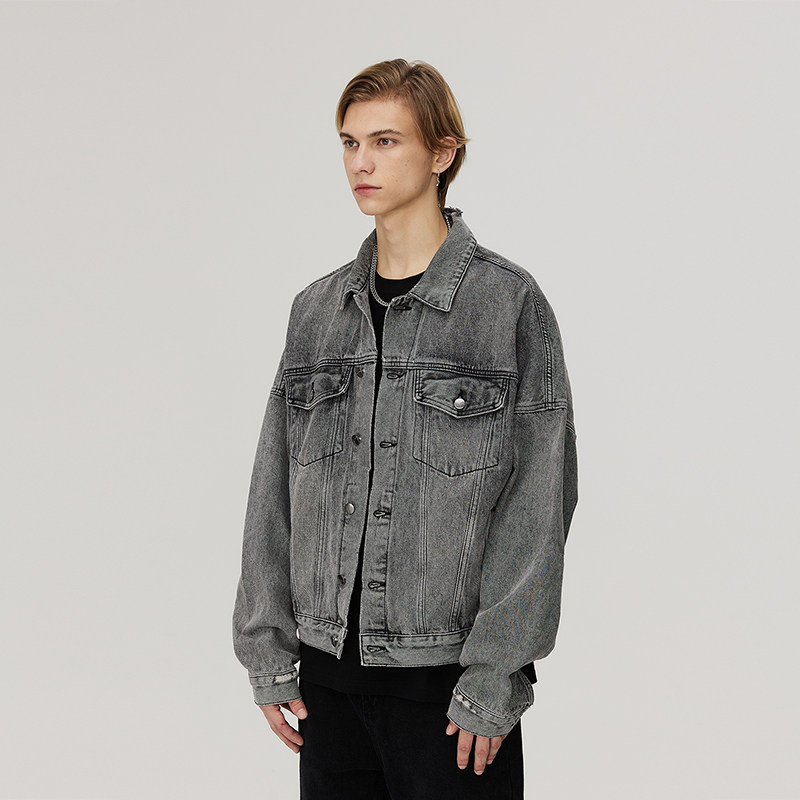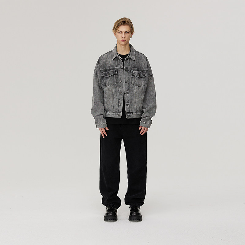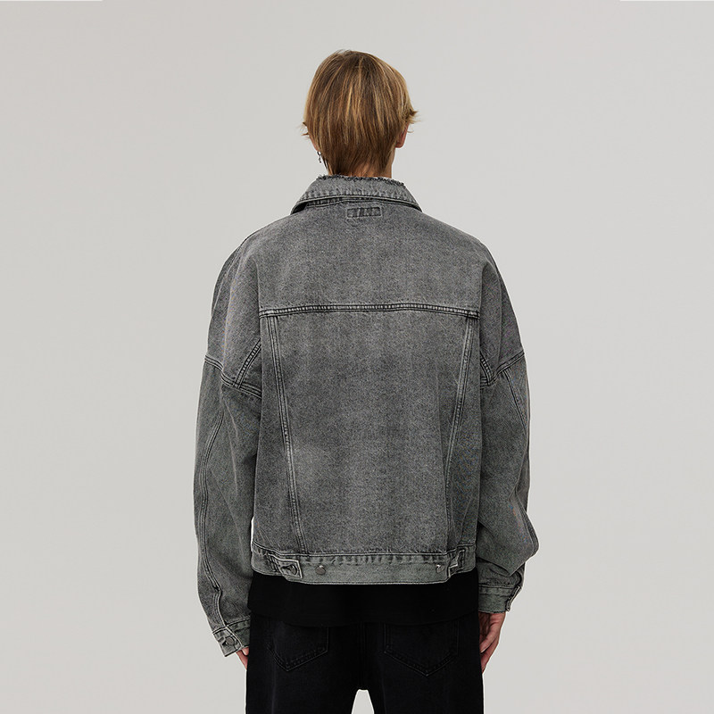 CLIMAX VISION水洗做旧短款牛仔夹克外套男女同款cleanfit上衣