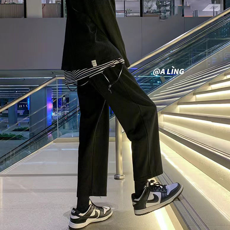 直筒裤休闲潮流宽松显瘦遮肉ins新款日常高级男女秋冬纯色阔腿裤