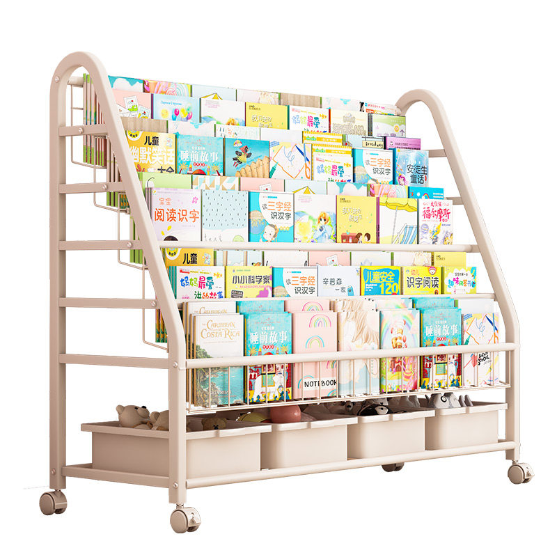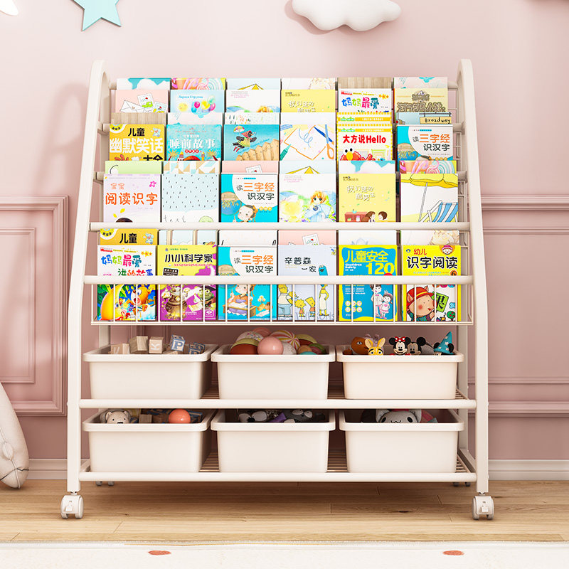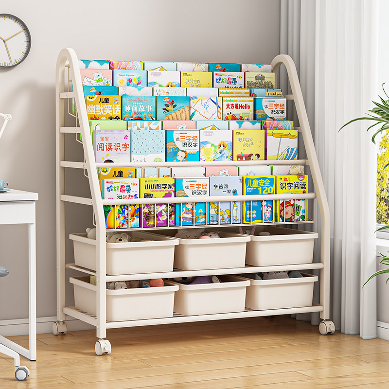 儿童书架家用绘本架可移动玩具收纳架一体靠墙简易书柜置物架落地