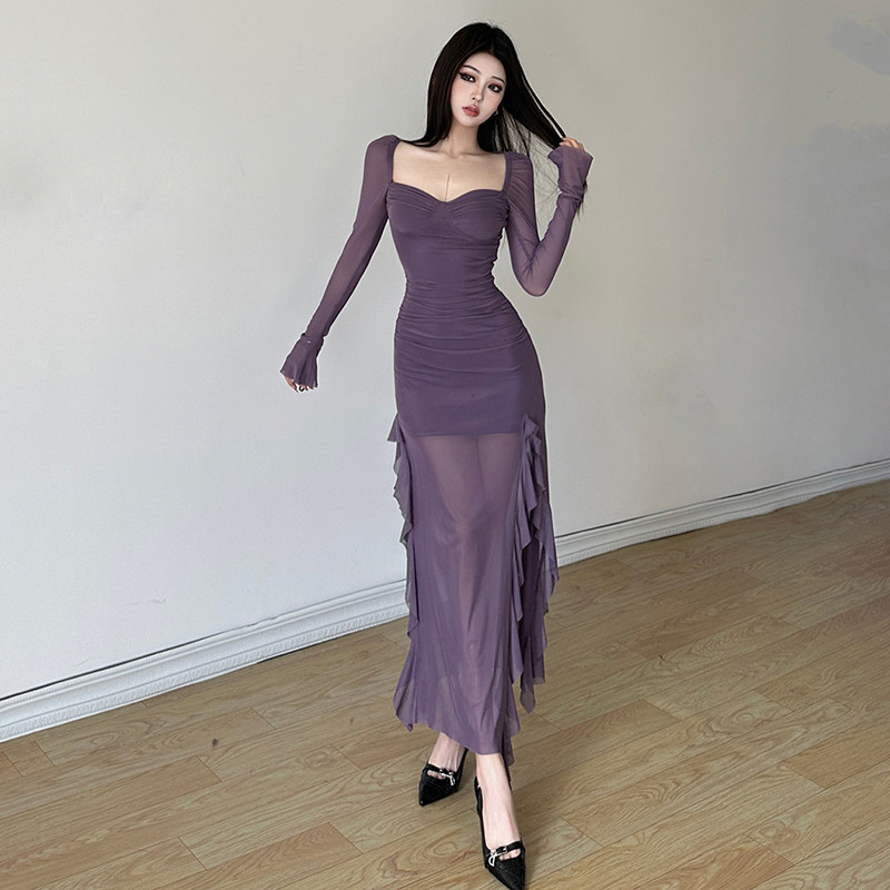 淘宝KLIOU潮人馆,气质辣妹风绝绝紫方领连衣裙