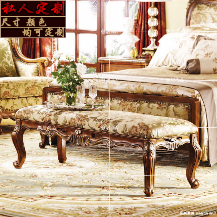 淘宝红日当空正品供应链,新款欧式实木床尾凳床边凳别墅雕花卧室高端布艺床尾沙发床榻换鞋
