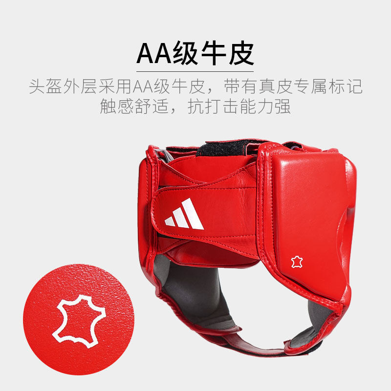 adidas阿迪达斯IBA拳击头盔专业比赛真皮护头套散打搏击武术格斗