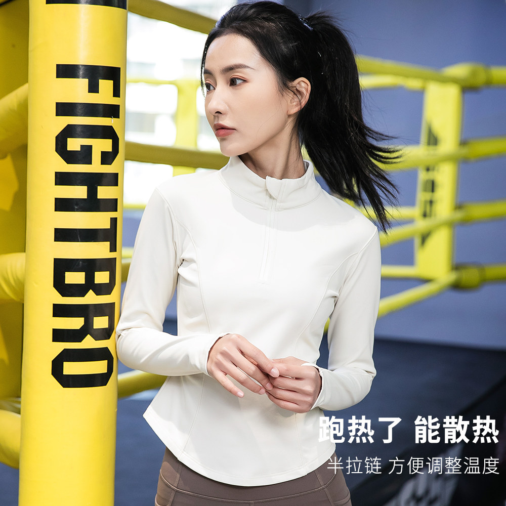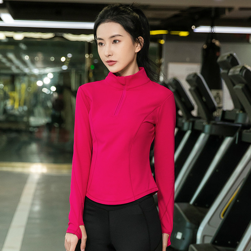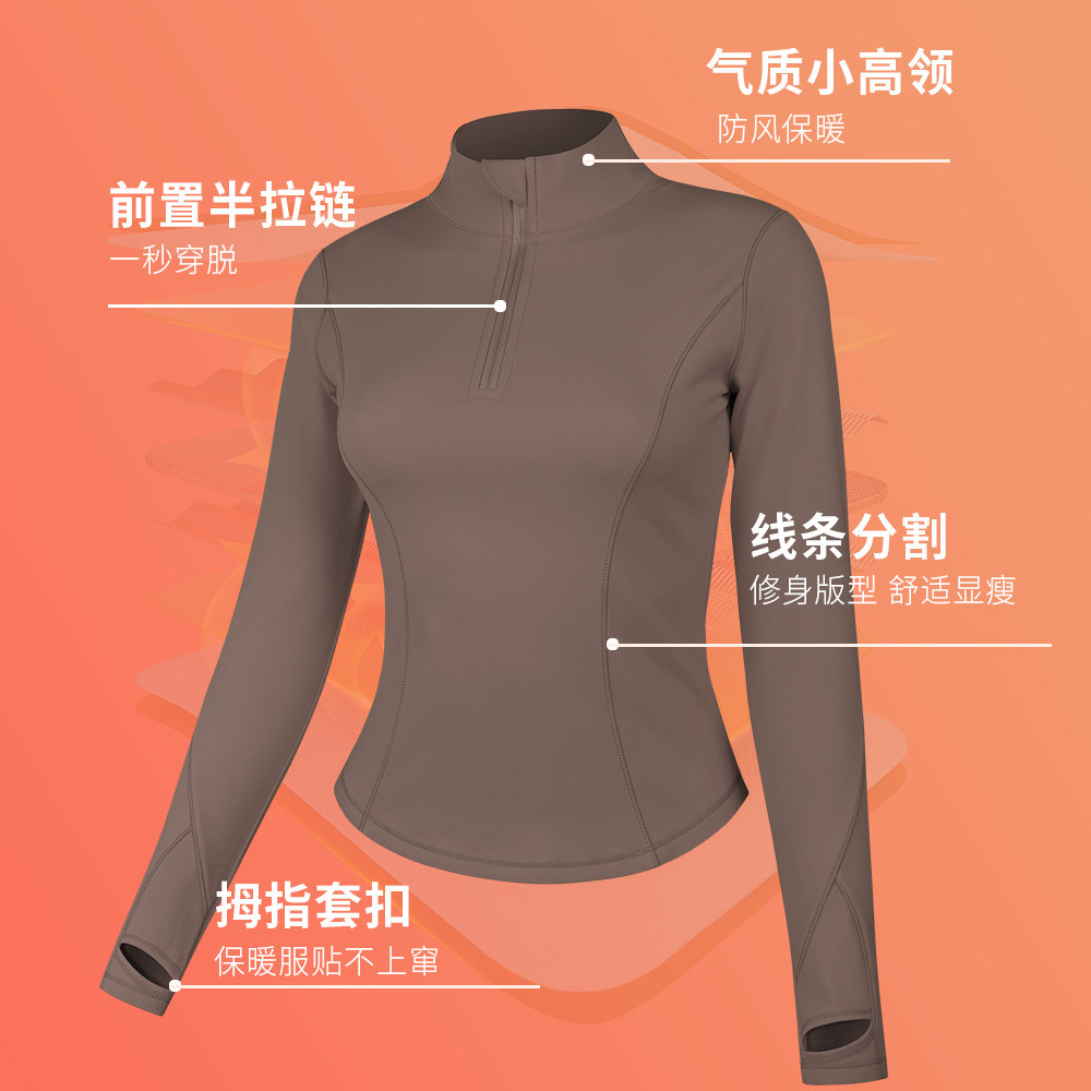 加绒半拉链晨跑步运动上衣女专业高端跳舞健身冬季瑜伽服长袖立领