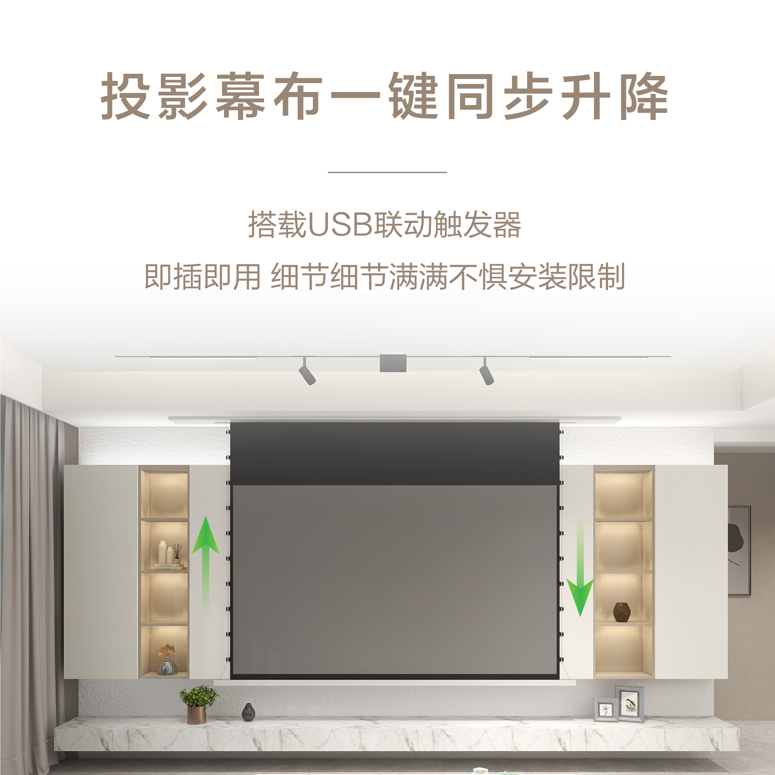 天猫绿极旗舰店,绿极嵌入式天花投影幕布电动升降,隐藏嵌入式天花投影幕布电动家用超高清联动