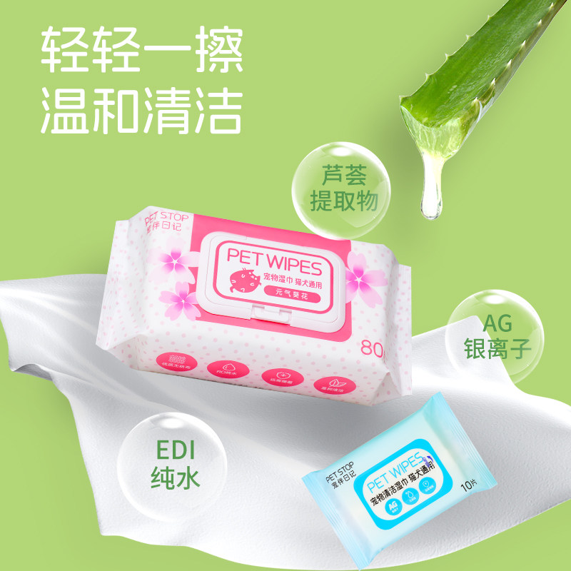 宠伴日记宠物湿巾猫咪狗狗专用清洁湿纸巾免洗擦脚泪痕擦屁股用品