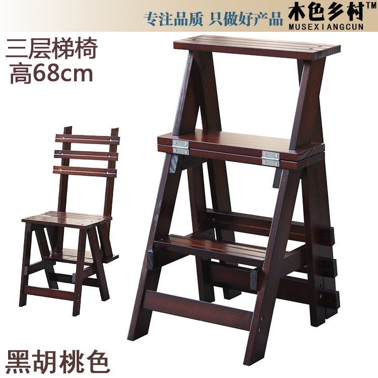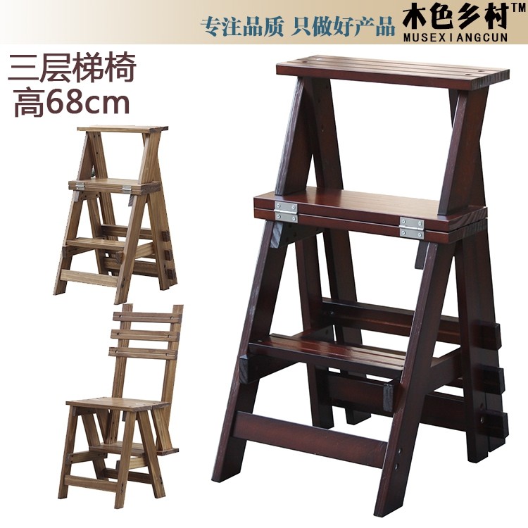淘宝丸子倩企业店,加厚实木家用梯子 室内楼梯椅 两用登高凳 三步折叠梯凳 创意木梯