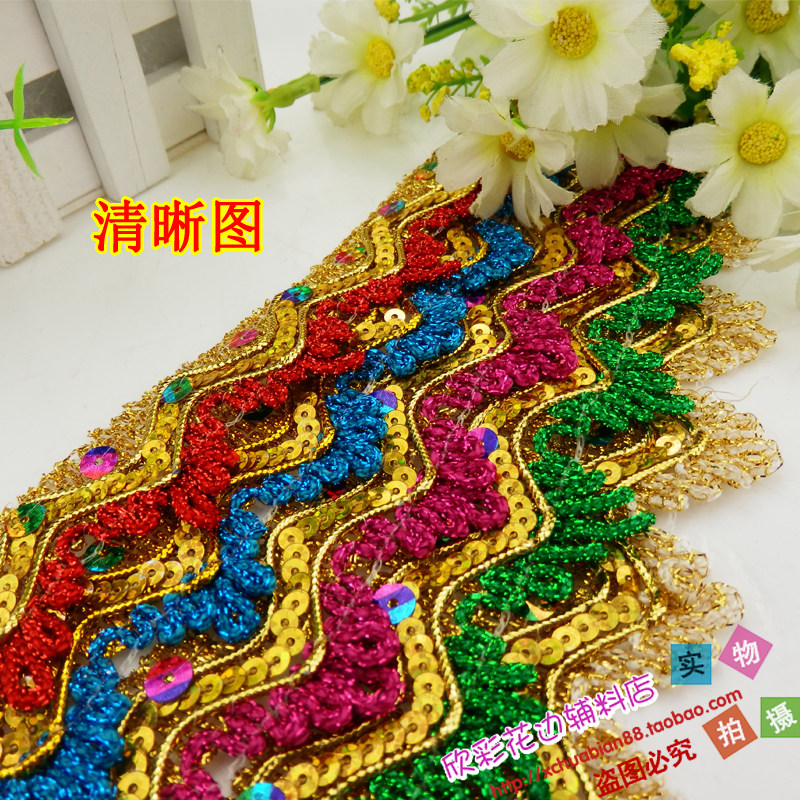淘宝荣业五金百货工厂直营店,DIY辅料民族手工丝带服装装饰花边 各种金银丝亮片花边 H972#花边