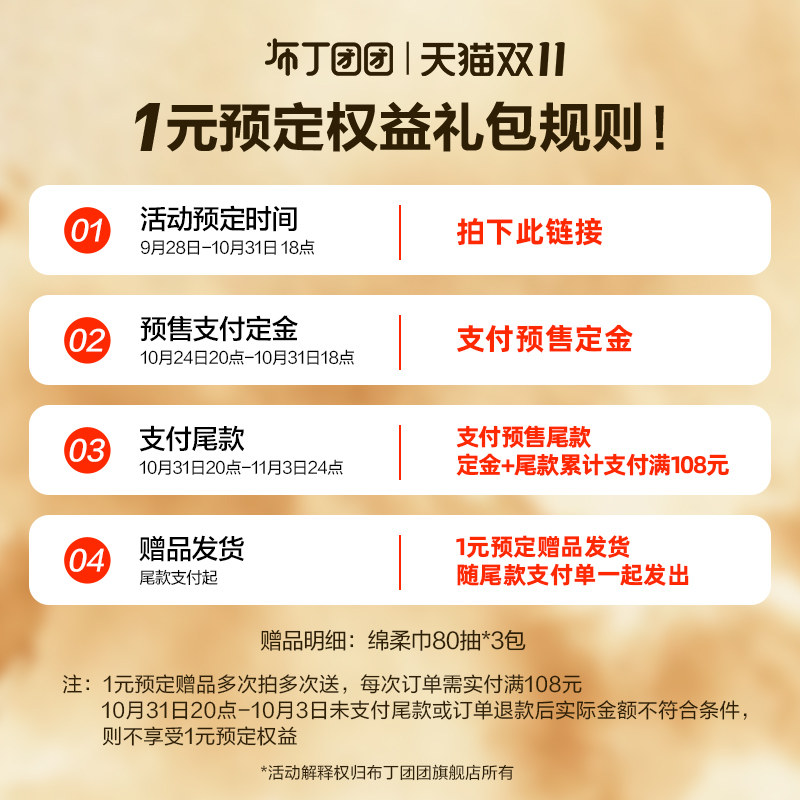 【1元预订】布丁团团预售抢先锁定双11赠品-单拍不发