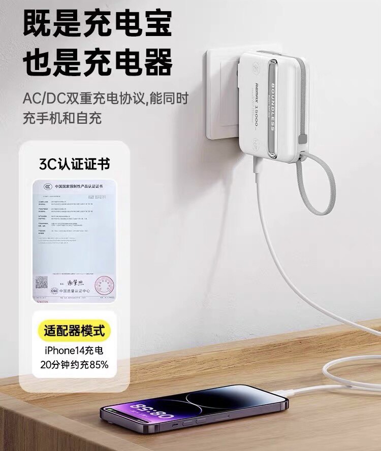 Remax充电宝+插头适用笔记本iPad
