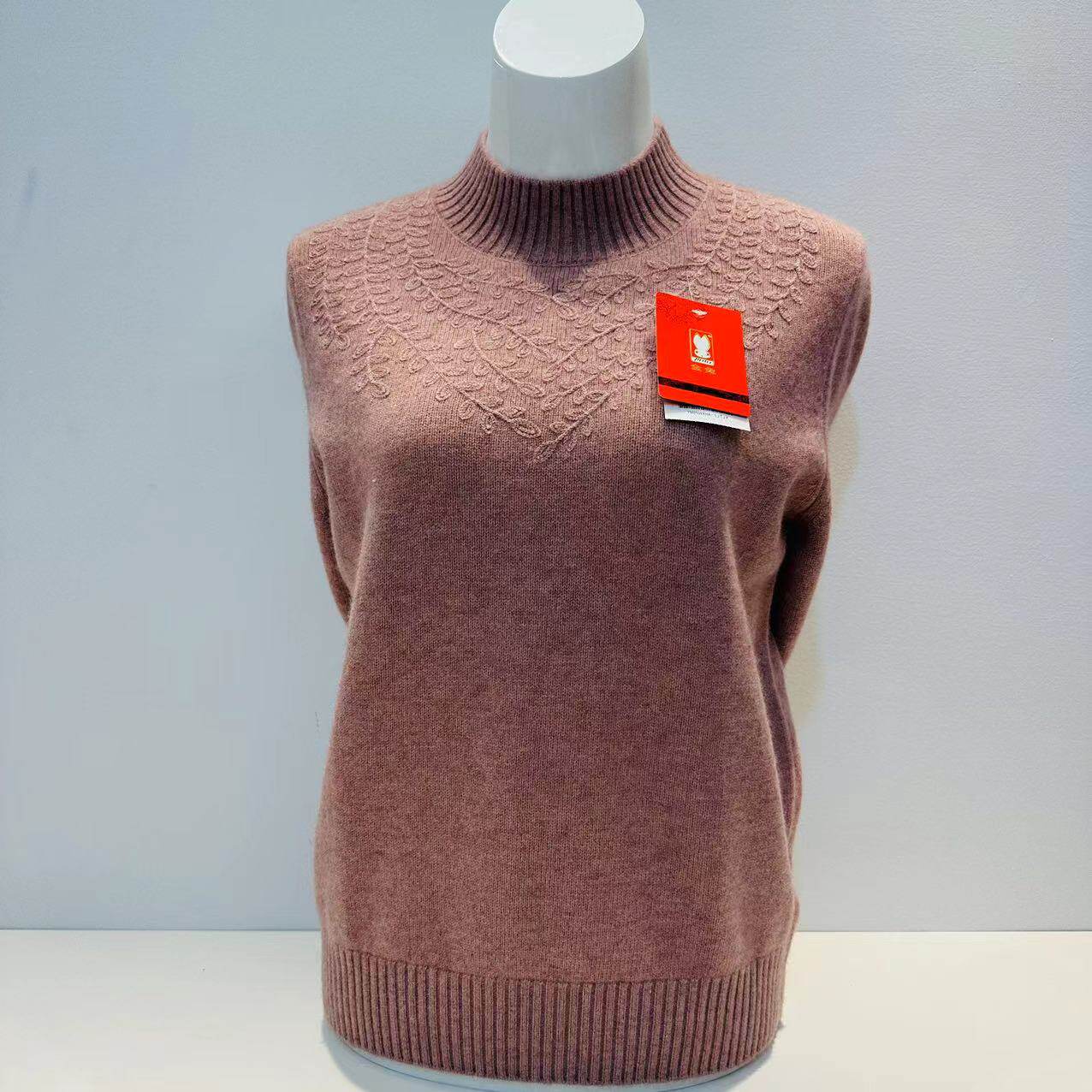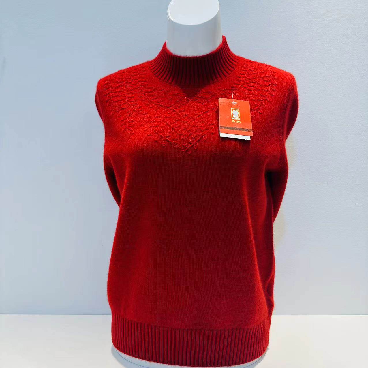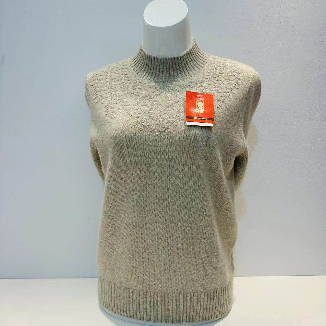 金兔100山羊绒衫细腻高奢女装绣花毛衣中年妈妈装半高领宽松舒适
