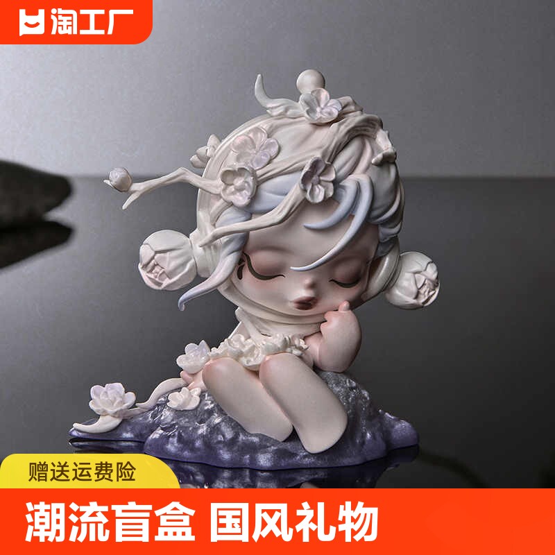 泡泡妹子玛特SP庭前墨梅系列古风清雅盲盒手办玩具潮卡通摆件礼物