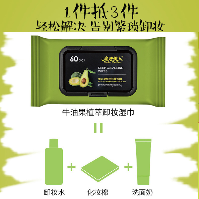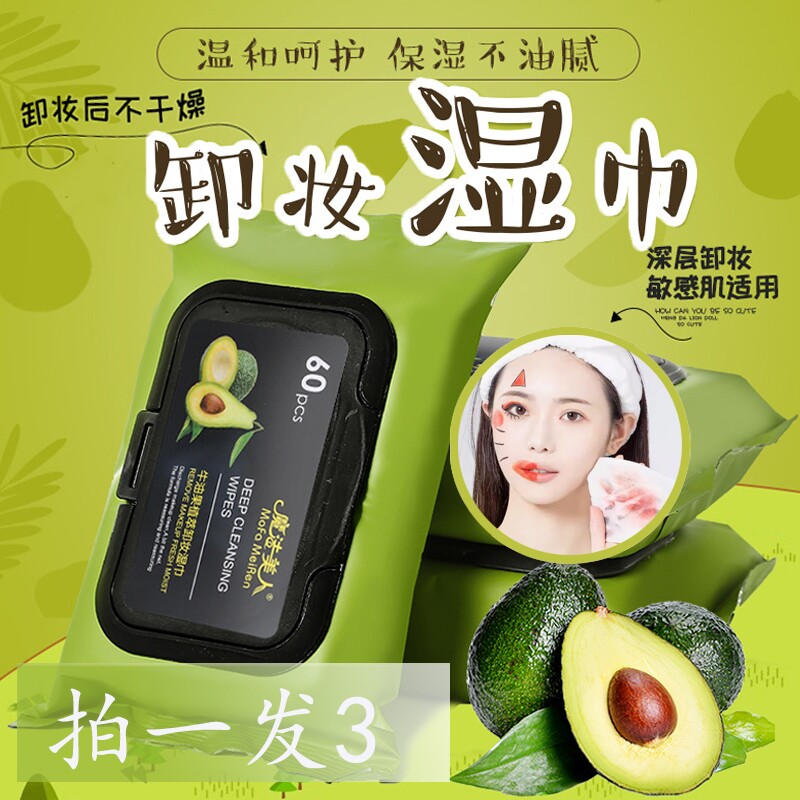 天猫淘工厂美妆直营,3包牛油果卸妆湿巾温和无刺激脸部眼部深层清洁一次性抽取式便携,潮流精品,品质保证