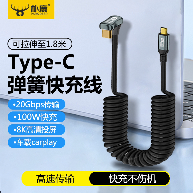 天猫朴鹿旗舰店,Type-C快充100W弹簧伸缩数据线,Type-C快充100W弹簧伸缩数据线