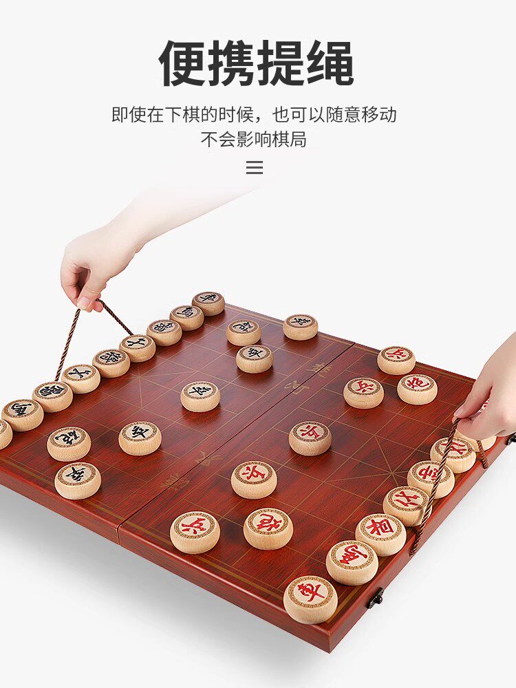 实木象棋 耐摔抗裂 木质折叠手提便携棋盘