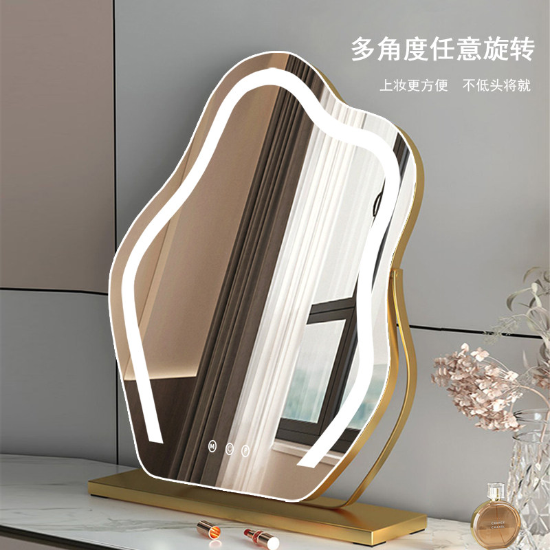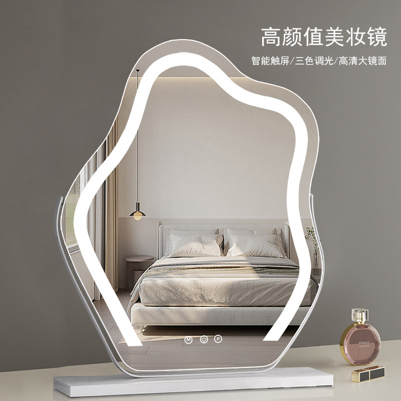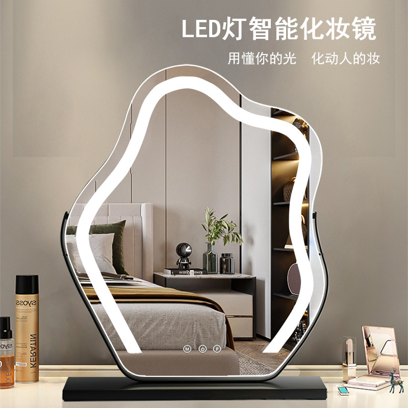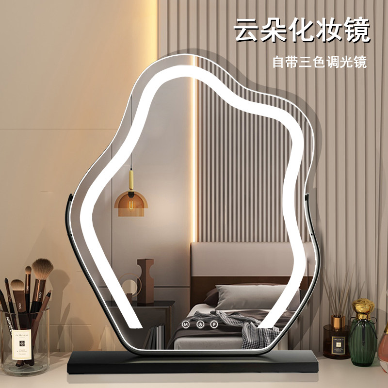 云朵化妆镜带灯led发光梳妆台镜子家用卧室桌面网红ins风底座镜子