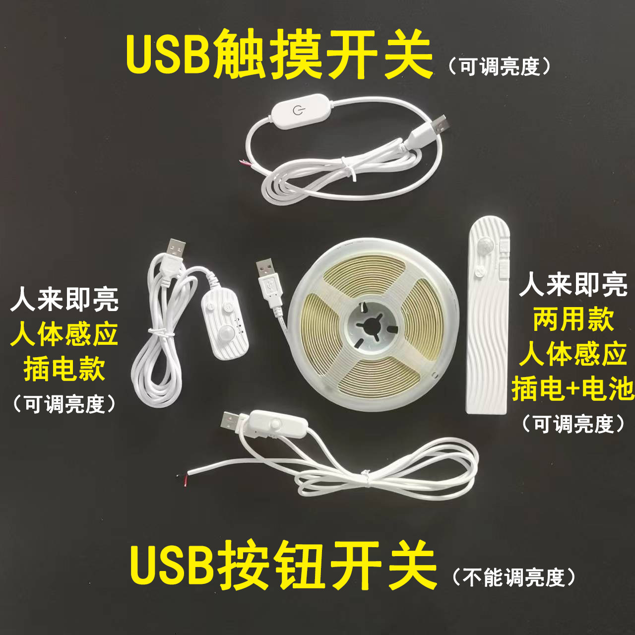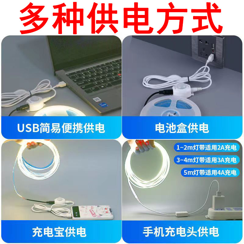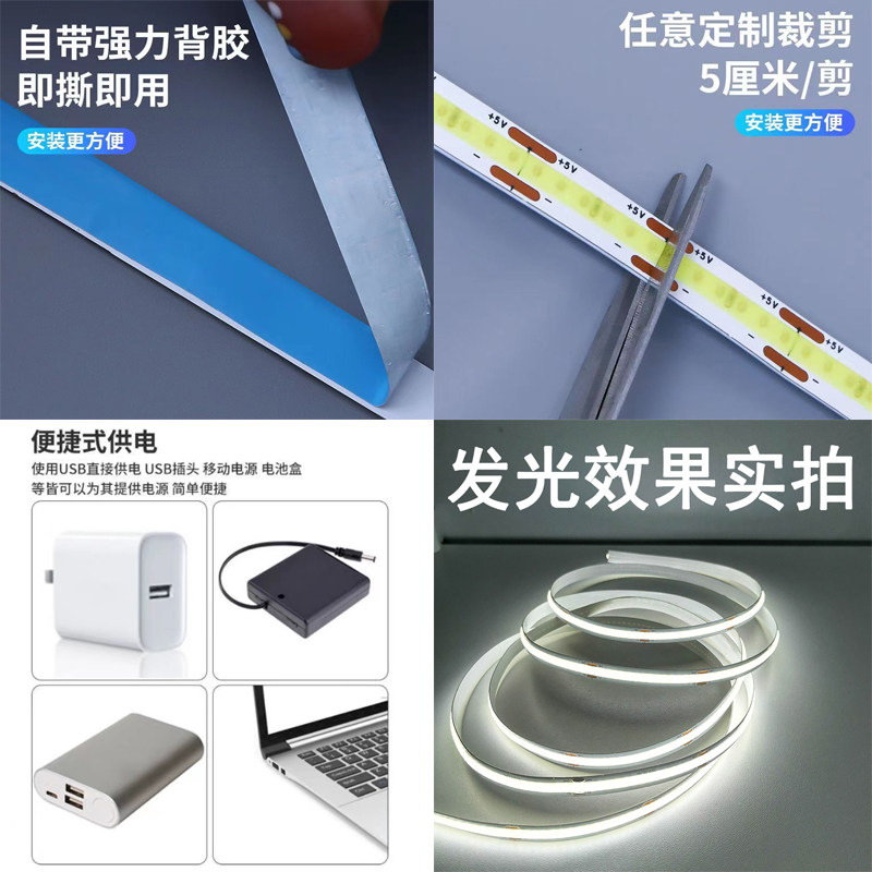5v led灯带usb接口自粘cob电池…