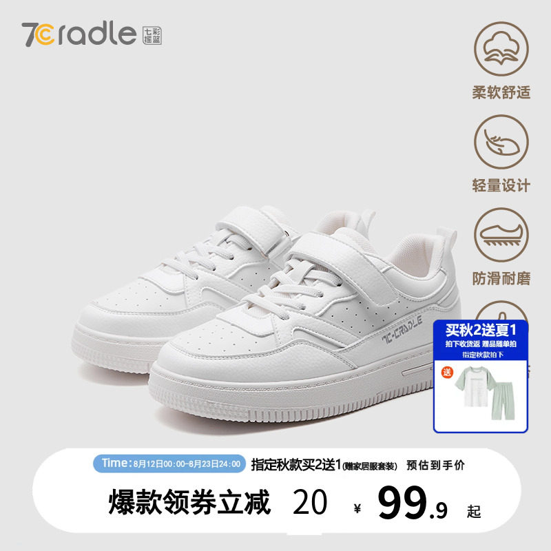 儿童板鞋男童低帮春秋2023新款休闲鞋透气防滑女童小白鞋七彩摇篮