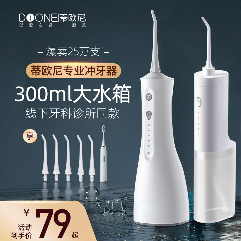 天猫蒂欧尼个人护理旗舰店,买1送2蒂欧尼便携式冲牙器,五档模式 300ML超大水箱 牙医推荐 礼盒包装
